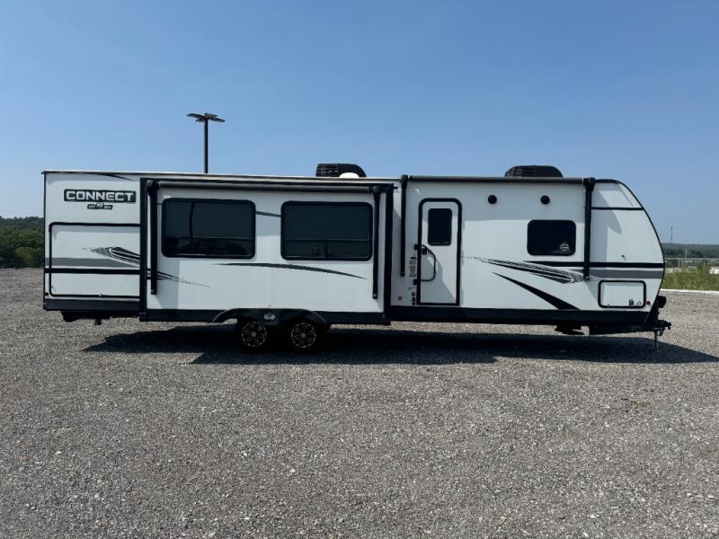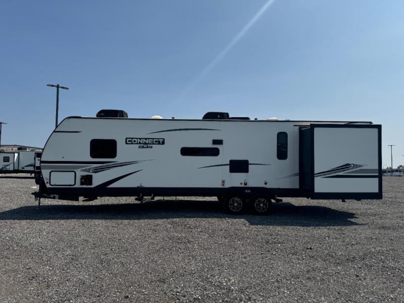 Stay connected to your family, technology, and nature with this Connect travel trailer! There is a high level of comfort and convenience incorporated into this trailer with the front master suite, the rear bunkhouse suite, and the outdoor kitchen. Now everyone can sleep just as well as they do at home, and those that are sleeping in the front bedroom will fully appreciate the Serta Comfort foam king mattress. For a central gathering location, the 70" sofa and booth dinette will be the place to go, and there is even an LED TV that can add some entertainment whenever needed. When you head outside, you'll notice that the exterior has two power awnings with LED lights and a pass-through storage compartment.