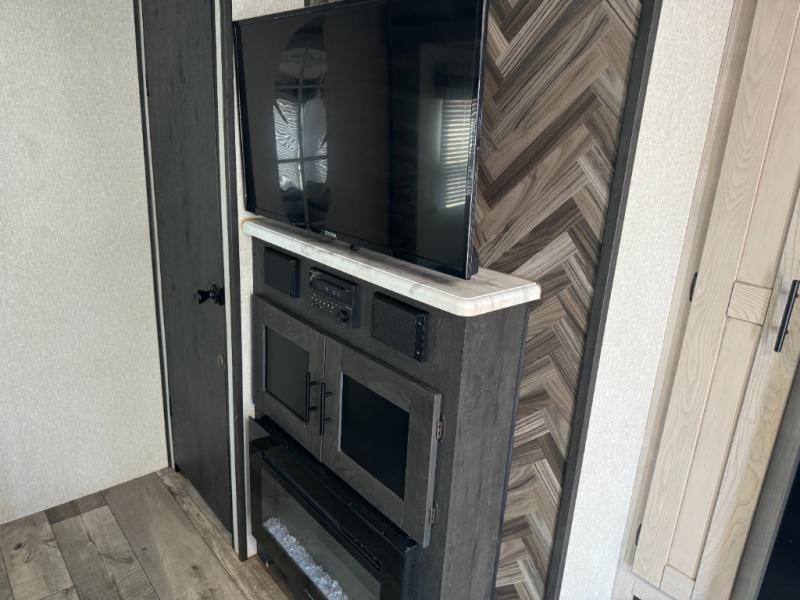 The KZ Connect travel trailer comes with an RV Airflow System which optimizes the airflow for your air conditioner by increasing the airflow by an average of 40%. This improves performance, speeds up cooling times, and reduces noise in your trailer. Some of the other helpful features found on the Connect are the heated, insulated, and enclosed underbelly, the exterior docking station, the fiberglass front cap with front windshield, the 82" interior ceiling height, and the protective front diamond plate. There are some useful technological features, like the two LED motion-sensor lights, the HDMI and USB charge, OneControl monitor panel, and the multi-media entertainment system with DVD. The KZ Engage is powered by OneControl, and it monitors battery levels and controls slide rooms, the leveling system, the awning, inside/outside lighting, and the TPMS prep.