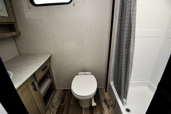 Rear Bathroom with comfortable layout.KZ Connect SE travel trailer C221RBSE highlights: