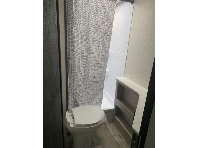 Camping can be comfortable when you park this trailer at the campsite! You will have sleeping space for eight between the popular double-size bunks next to the full bathroom, the queen Murphy bed up front with a sofa to utilize during the daytime, and the U-shaped dinette within the slide out which also includes a wardrobe/storage cabinet. The cook has a galley kitchen with full amenities including a pantry and L-shaped counter with a large sink. They also have the choice of making meals outdoors on the outside kitchen with a griddle. You will find outside storage in the front pass-through compartment for your larger outdoor gear, plus the trunk door allows access to the interior.