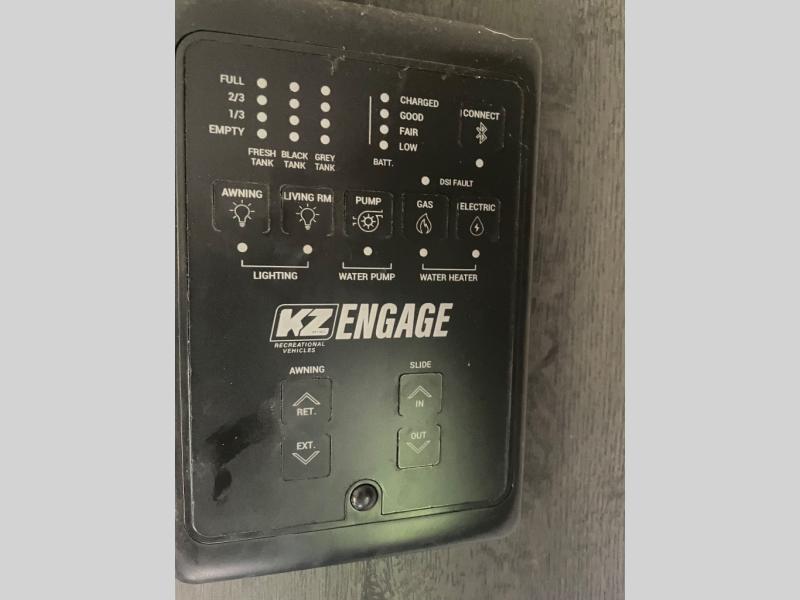Each Connect SE travel trailer by KZ includes an NXG frame foundation that is constructed with high-strength low-alloy prime steel, uses the CNC controlled rail fabrications and camber, plus eliminates frame failures, construction issues, and corrosion! The Climate package provides added insulation to extend your camping season year-round with a fully enclosed, insulated and heated underbelly to protect the tanks and pipes. Some top features include the 17-inch range with illuminated control knobs, the seamless countertops with a deep undermount stainless steel kitchen sink including a sink cover for added countertop space, and a black high-rise faucet. You will also enjoy the KZ Engage package that is powered by OneControl to monitor and control the battery levels, the slide(s), the leveling system, the awning(s), plus the inside and outside lighting. Choose your favorite today!