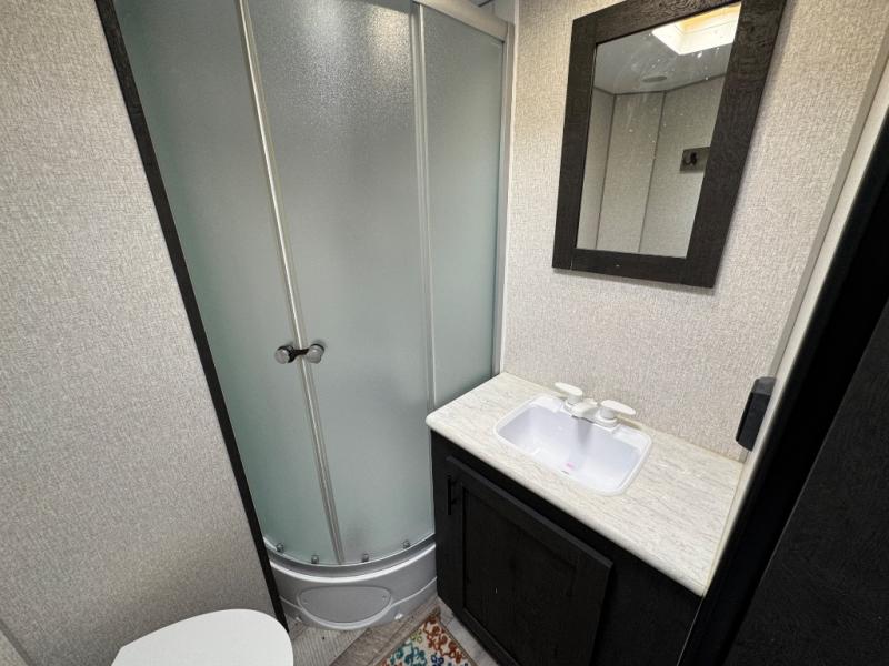 Each Sportsmen SE travel trailer and toy hauler by KZ is constructed with KZ exclusive tough shield exterior metal, one-piece seamless walk-on Tufflex roofing material, and a fully enclosed, insulated, and heated underbelly. You will appreciate the RV Airflow System that optimizes the airflow in your A/C system for a more evenly and quietly-cooled trailer. Some of the exterior conveniences you'll find are the four stabilizer jacks, nitrogen-filled tires, an exterior shower, and a Leash Latch with a bonus beverage opener. You'll feel right at home with residential-grade linoleum, a black residential kitchen faucet, large overhead cabinets, a shower surround, and much more!