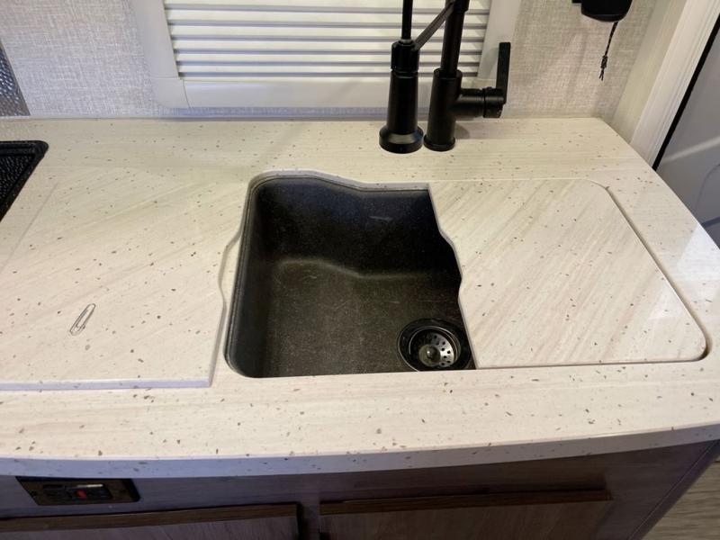 The main difference between this Lance travel trailer and model 1985 is that this unit offers you more storage space in the back instead of taking up the full width of the trailer with a bathroom! The bathroom has a dual-pane skylight to let in natural sunlight as you get ready in the morning, and the deluxe queen pillowtop innerspring mattress with a bedspread and two LED reading lights is at the other end of the trailer. This bed can be sectioned off by drawing the privacy curtain, and the U-shaped dinette will provide sleeping accommodations for two more people. If you prefer, you can even change out the bed for the optional convertible sofa bed. Each person will benefit from a hot meal prepared in the kitchen on the stainless steel three-burner range with 21" oven or in the stainless steel microwave.