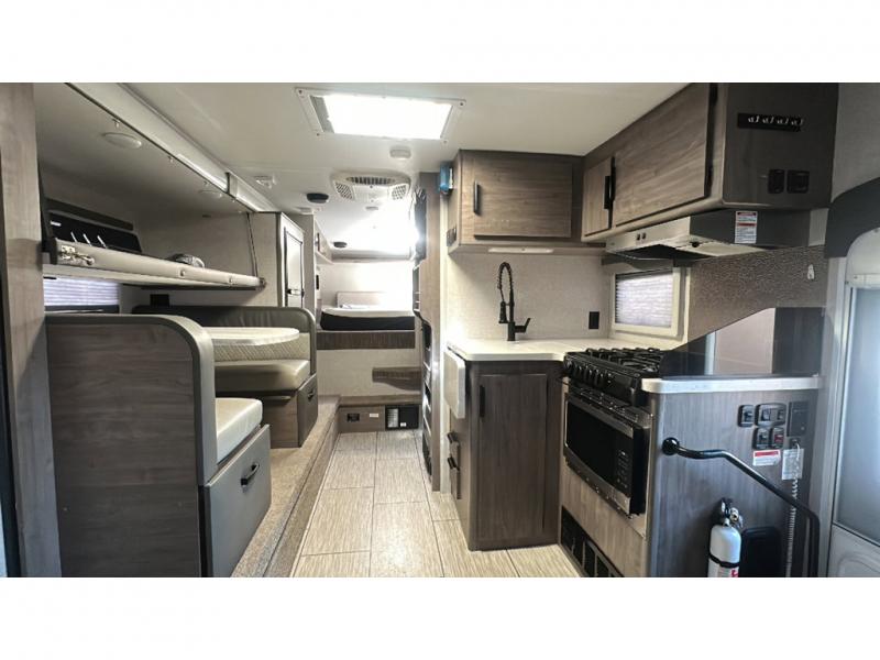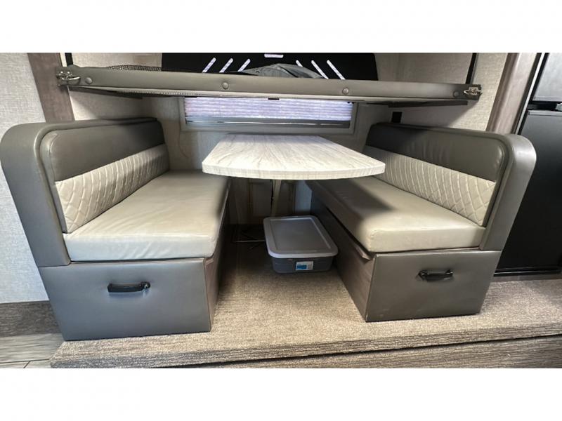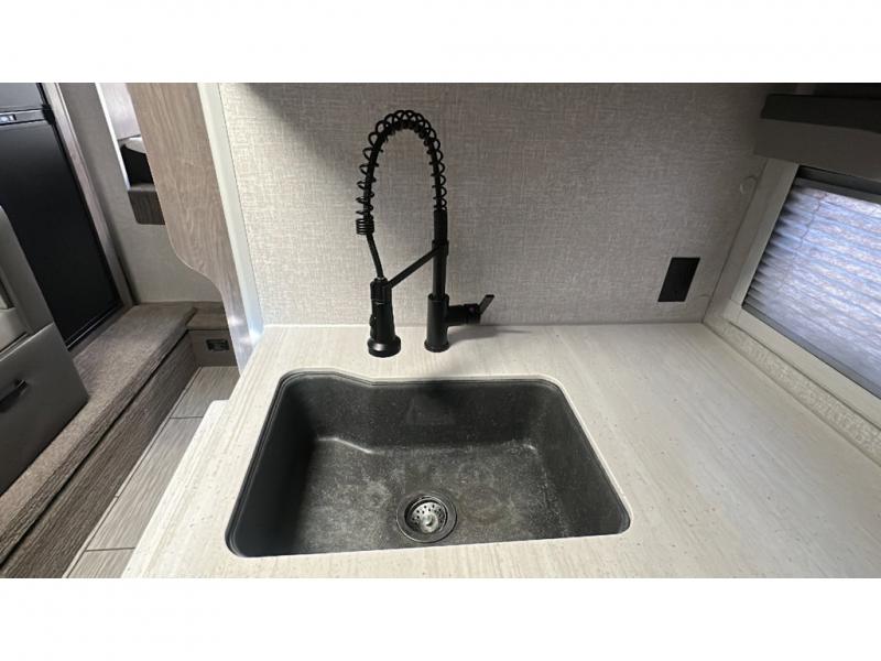 This luxurious Lance truck camper is the most spacious and amenity-packed camper that Lance designs, and it comes with enough room to sleep six people during any adventure between the sofa sleeper, the cab-over queen-size bed, and the booth dinette. You will certainly appreciate the extra space that the "Super Slide" brings to this camper plus the rear wall slide, and since this unit comes with a fully equipped kitchen, you will find it easy to prepare dinner each evening while using the stainless steel three-burner range top. Not only does this camper come with a dry bath, but it also contains a skylight which allows the rays of sunlight to stream through like the giant windows provide.