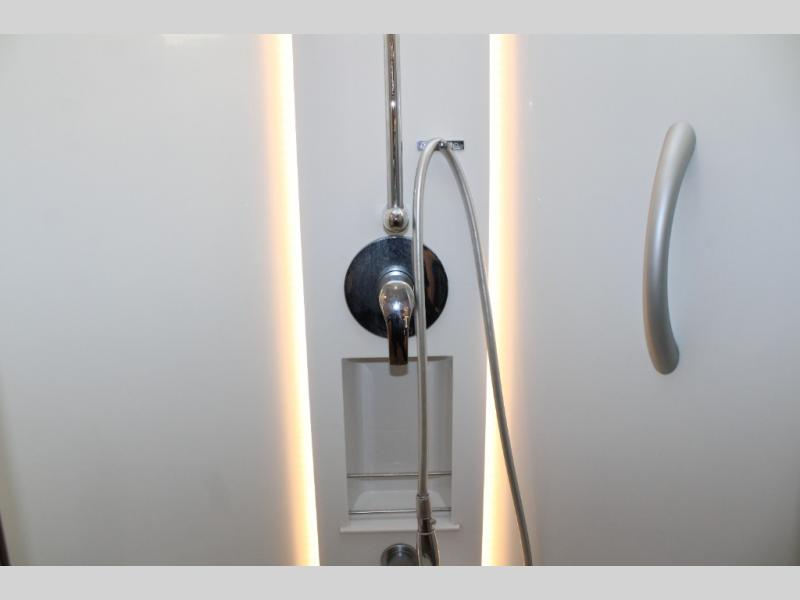 With a large residential-style bathroom in this Unity Class B+ diesel motorhome, you will enjoy every moment you spend cleaning up in the radius shower, and the skylight above will deliver more height and extra sunshine to illuminate the entire space. During the day you can host friends and family with the swivel cab chairs and standard Leisure Lounge, or you can choose to add the optional Leisure Lounge Plus. Once the party has ended, you can rest peacefully for the evening after you've turned down the Murphy bed. The next morning you might decide to make breakfast on the cooktop or in the convection microwave and serve from the countertop extension or on the Corian solid-surface countertops.