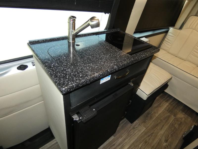 With any Midwest Automotive Passage 144 Class B diesel motorhome, you will appreciate the safety of the Mercedes-Benz chassis on a 19' platform and the performance engineering of a diesel engine. Inside, you will find meticulous leather-clad upholstery and polished wood veneers throughout, as well as a cabin full of appliances and electronics that offer convenience and luxury. It's time to live in luxury when moving down the road or at your favorite destination in a Passage 144 coach!