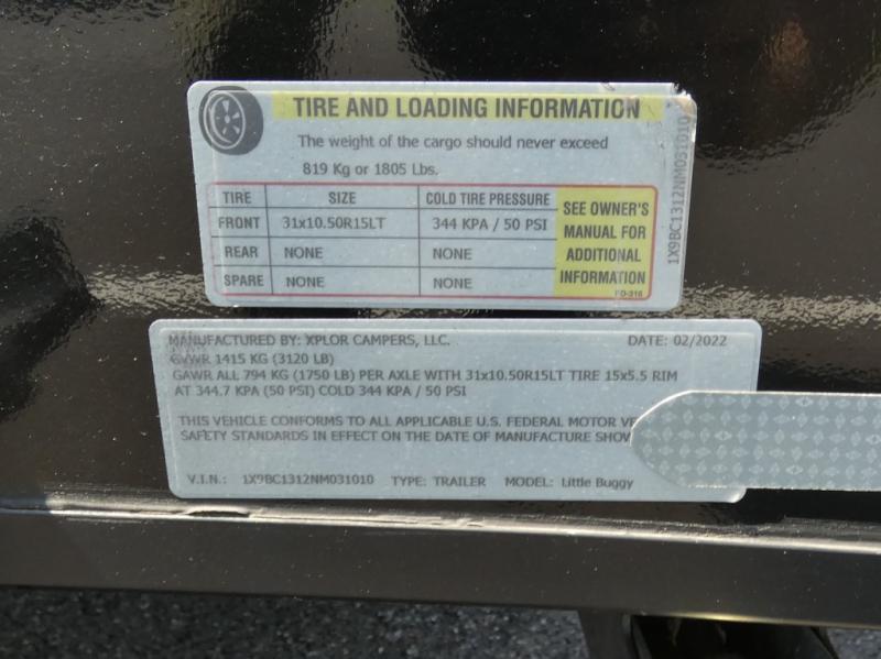 With the Little Buggy teardrop trailer by Modern Buggy RV, you will have 31" all-terrain tires on 17" wheels allowing you to venture on bumpy, muddy and off-the-beaten path roads. Full of modern amenities including 12V lights, outlets, and USB charging stations plus a 12V electric vent fan all powered by 150 watts of solar and an expandable, portable Jackery 1000 with 1002 watt hour lithium battery capacity, plus more! And the teardrop is built on an industrial strength, high quality custom steel frame, and is welded together with hand-crafted aluminum and fiberglass parts. Get out and explore today with the Little Buggy in tow!