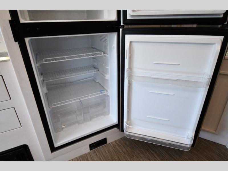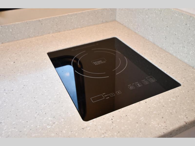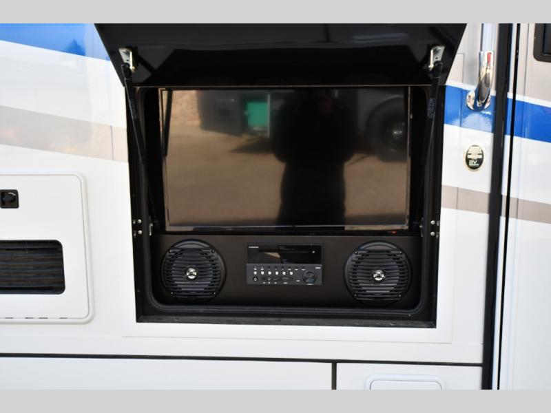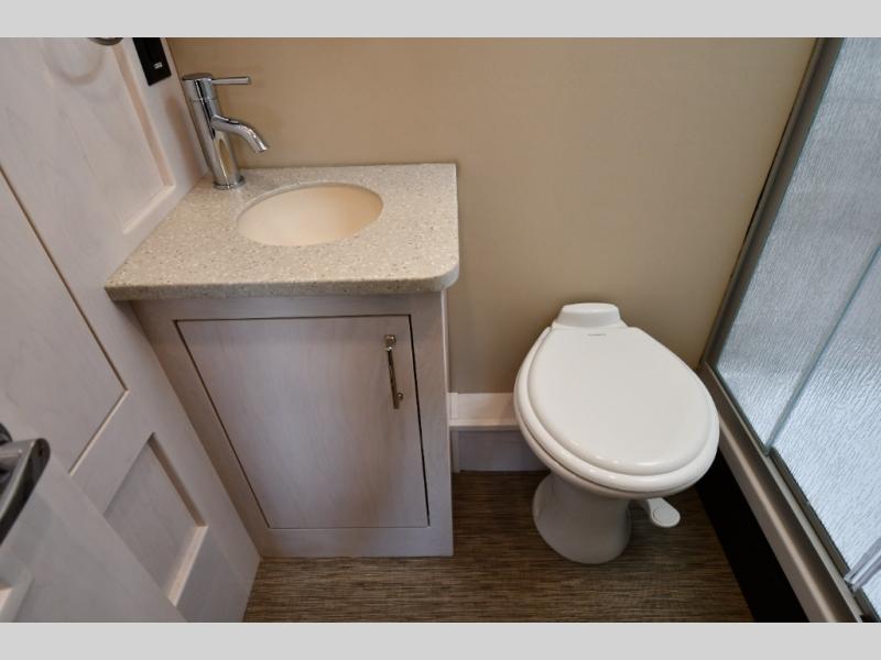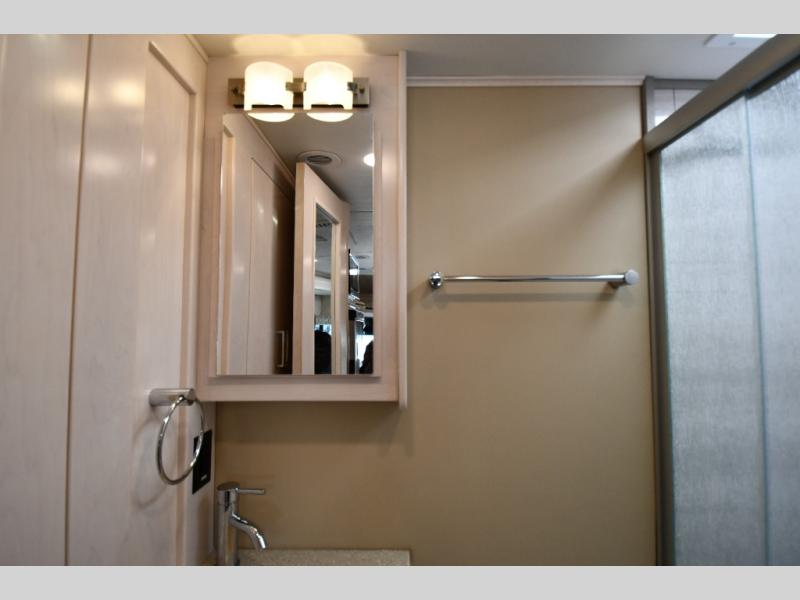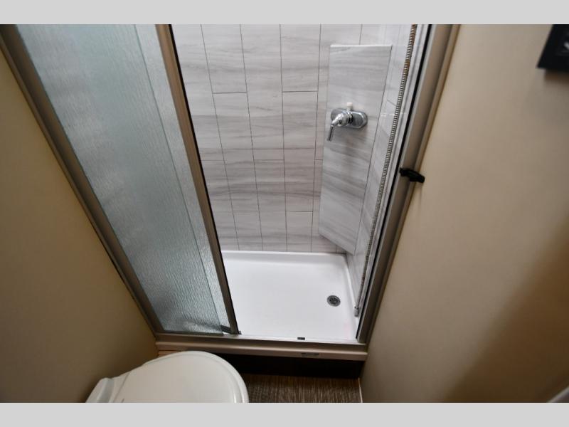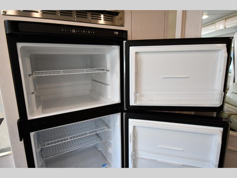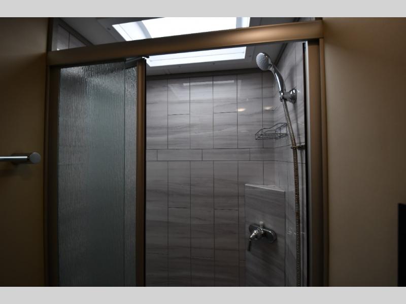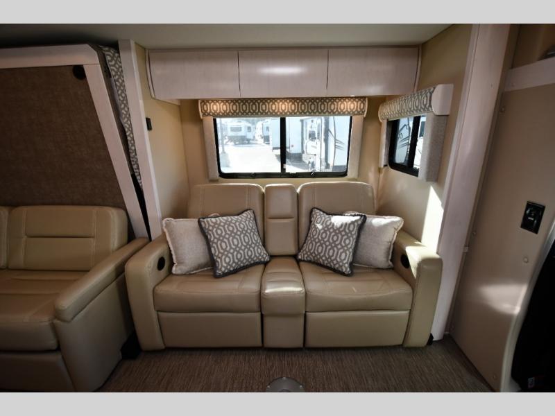 This is the perfect couples motorhome to explore the country! You will stay squeaky clean in the full rear bathroom with the 24" x 36" shower that has a skylight above it and a 22" x 50" wardrobe to store your clothes, towels and other toiletries. Depending on what time you enter this coach will determine whether you see the sofa or the 65" x 72" Murphy bed. The kitchen has a two burner cooktop, a convection microwave, and an 8 cu. ft. refrigerator to prepare home cooked meals, and a booth dinette to enjoy them at. The 46" x 80" bunk mattress over the cab lets another member join in on the adventure and the booth dinette offers sleeping space as well.
