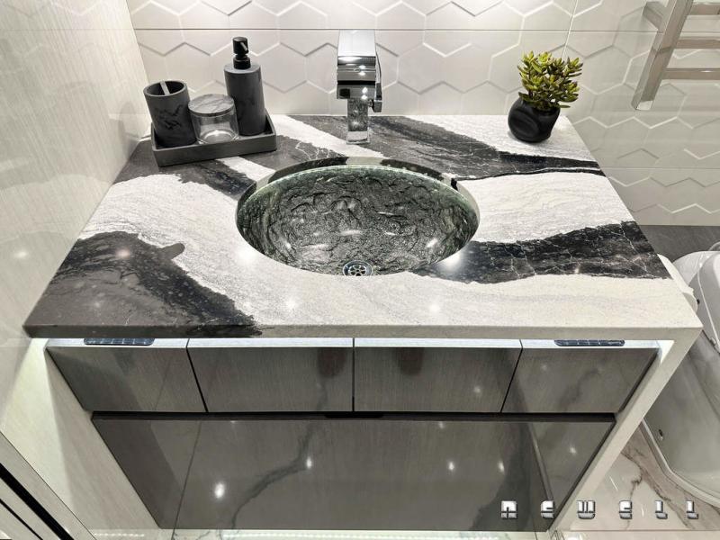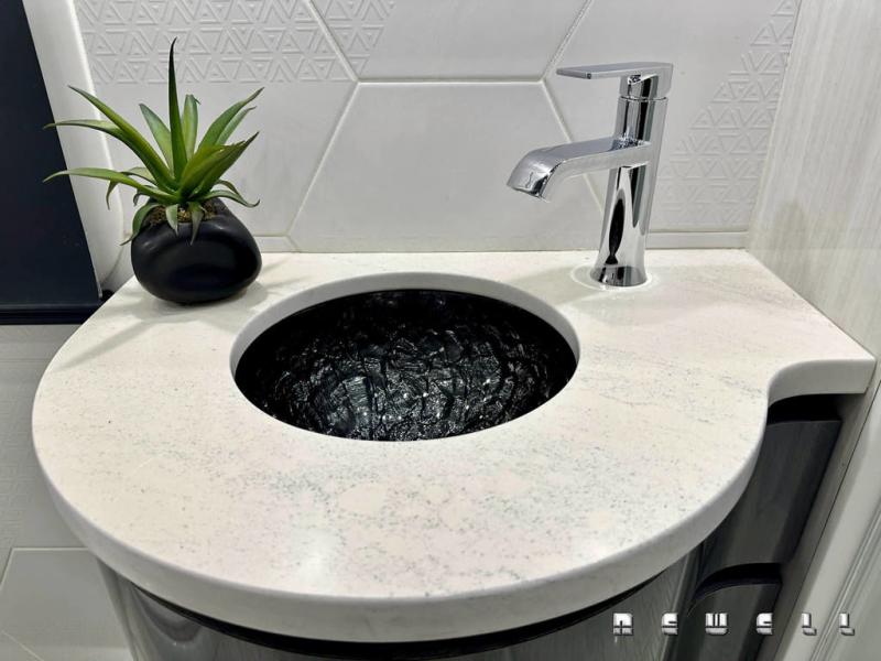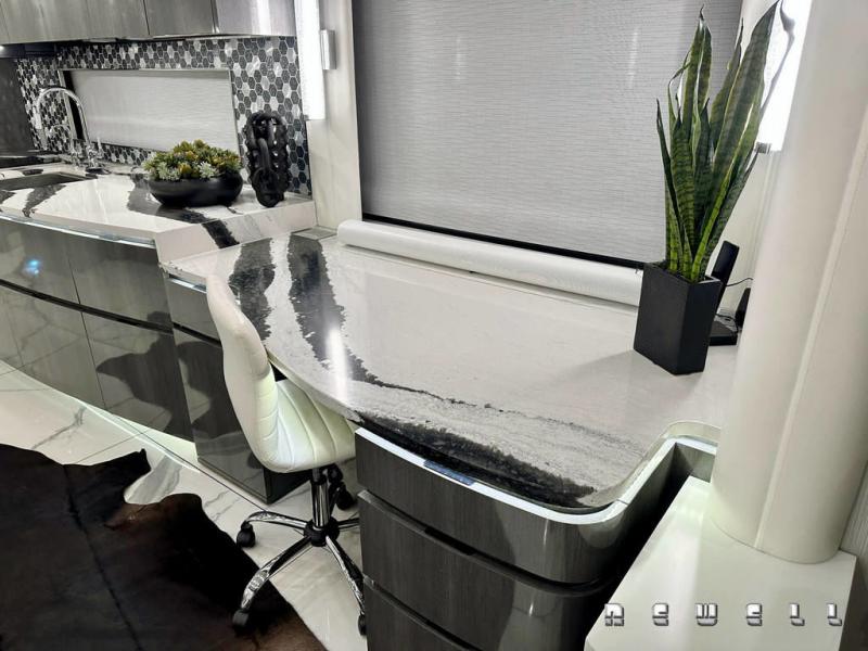Expandable dinette with Cambria quartz topCambria quartz countertops at galley and buffet