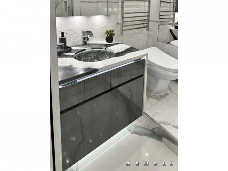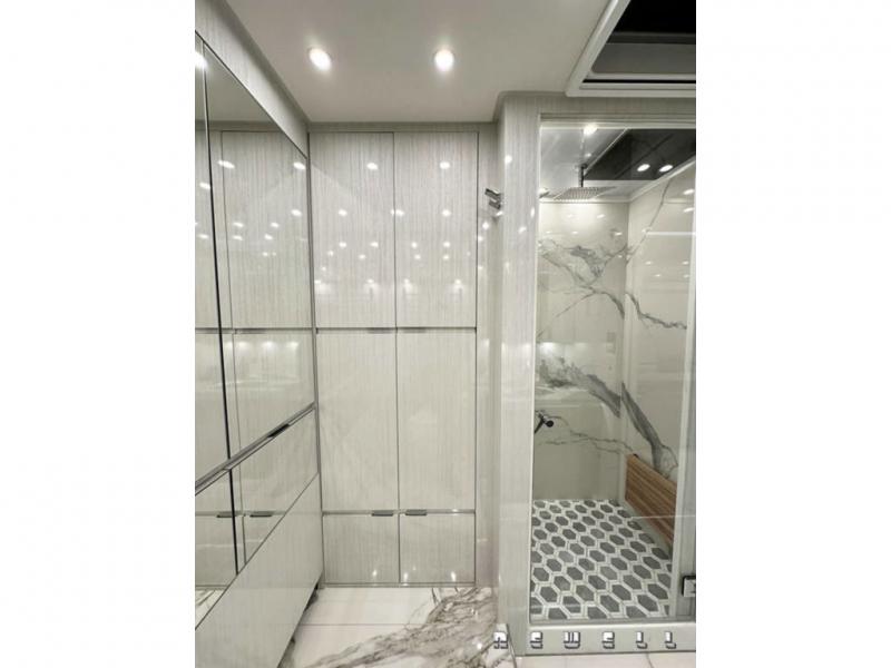 Junior king size extending bed with nightstandsBuilt-in dresser with Cambria quartz countertop