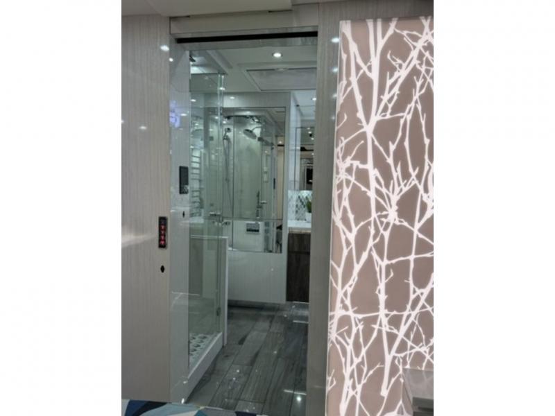 Optoma Projection TVBehind the mirror flat screen TV in master bath vanity upper cabinet