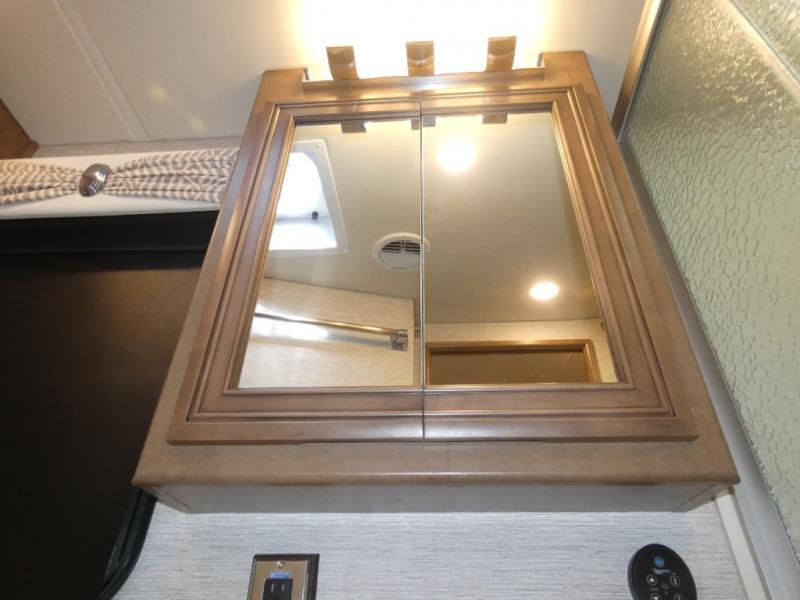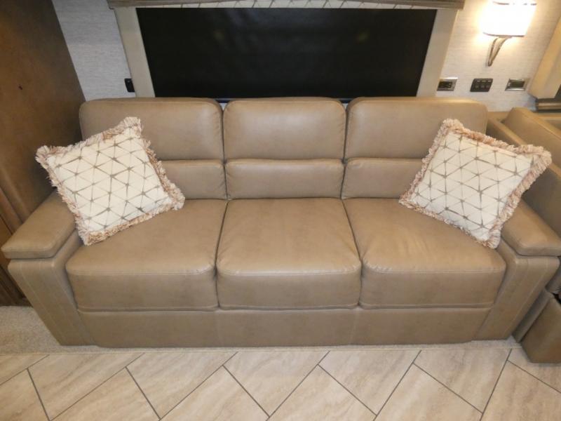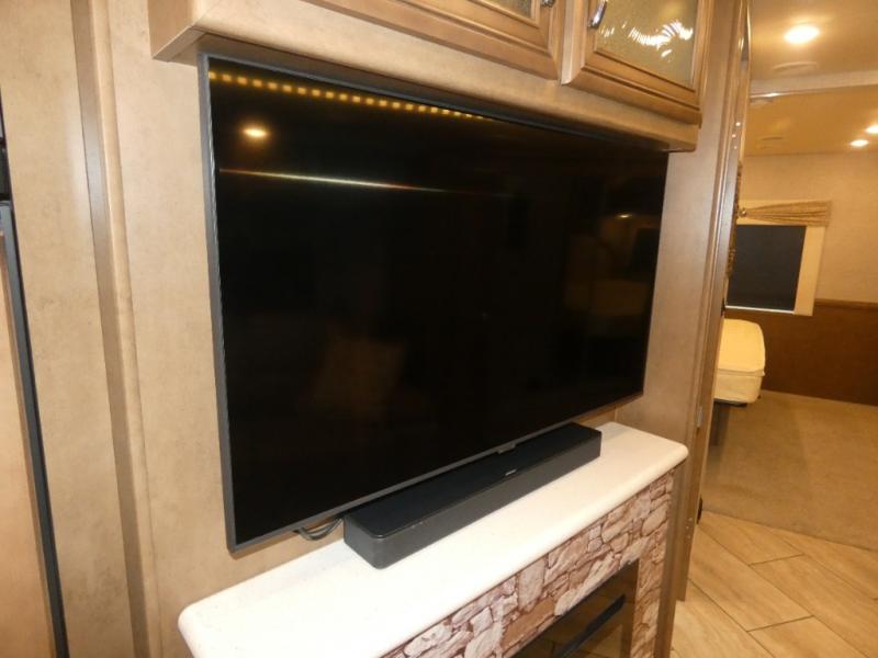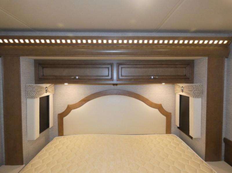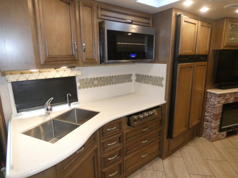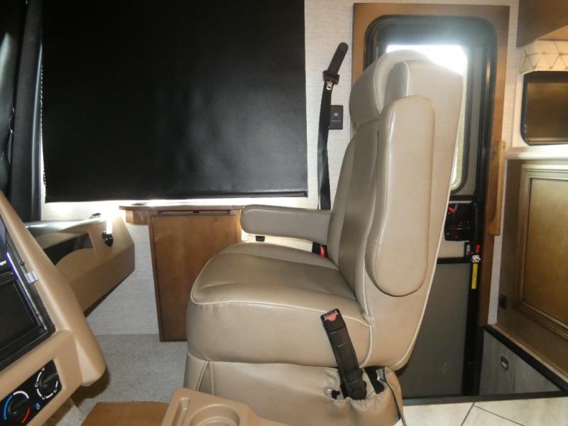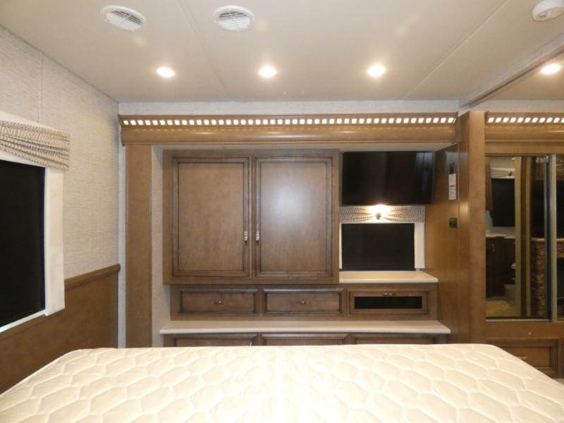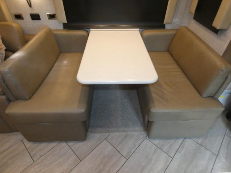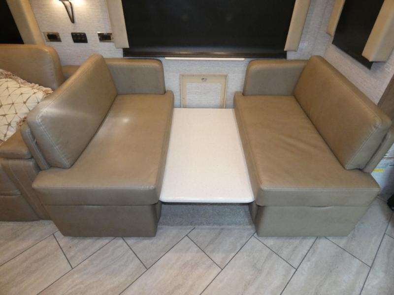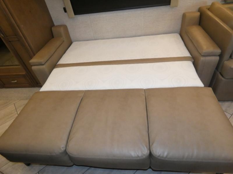 You will love the amount of space you have in this motorhome thanks to the full-wall slide out and the king bed slide in the rear bedroom. The wardrobe with sliding mirror doors allows you to bring along your favorite outfits and keep them wrinkle-free, and there are plenty of overhead compartments for your valuables. While the chef of your group is preparing lunch on the recessed three burner cooktop, your guests can relax on the tri-fold sofa or booth dinette. This model also includes a dry bar with an LED TV to keep you entertained on those rainy days!