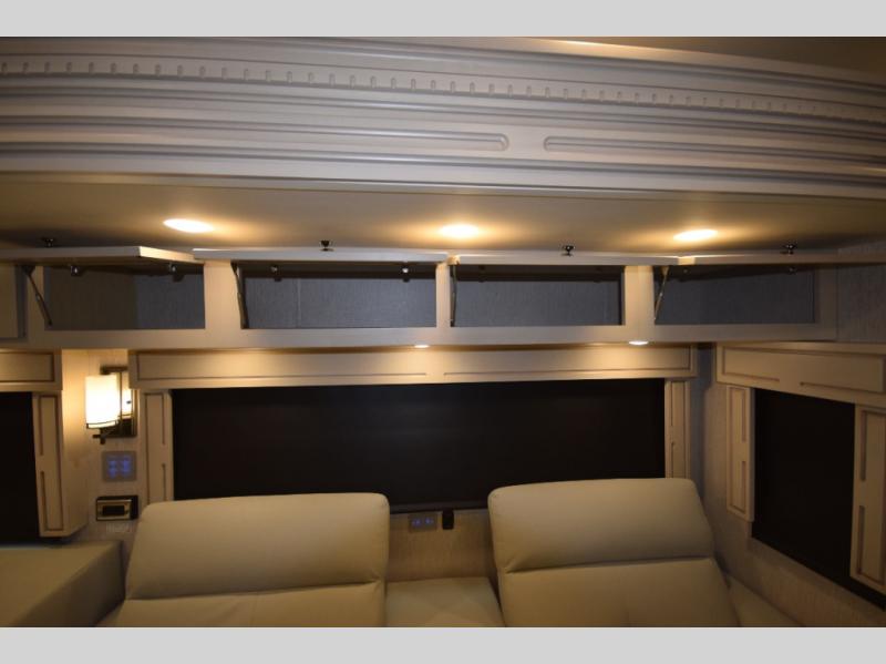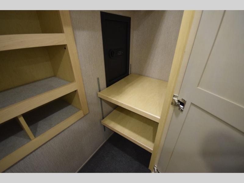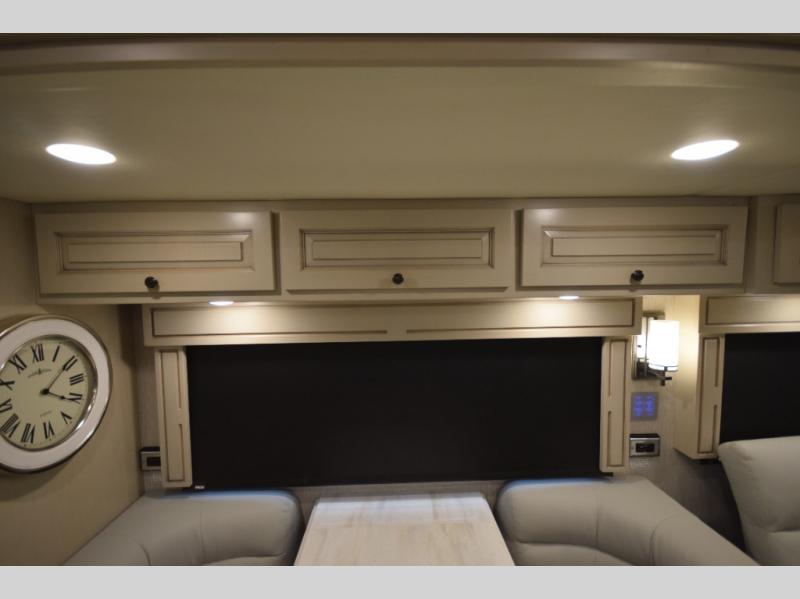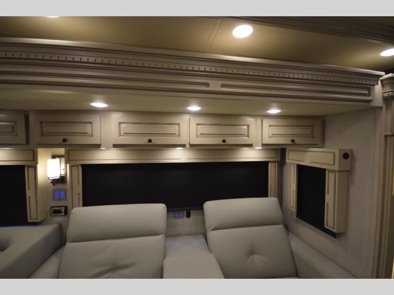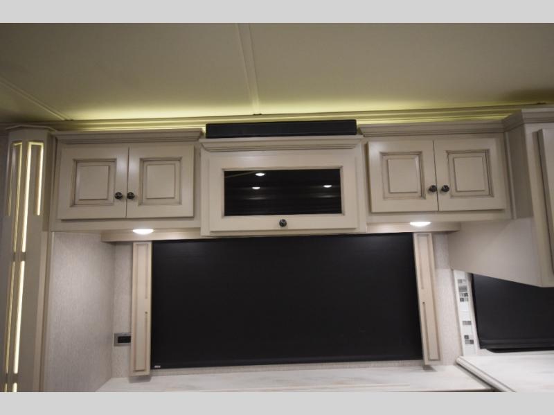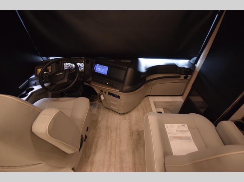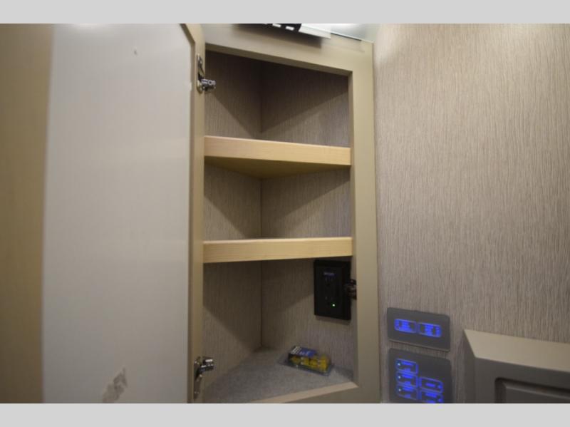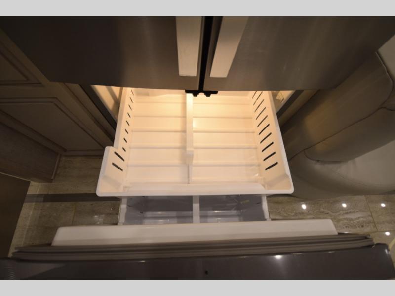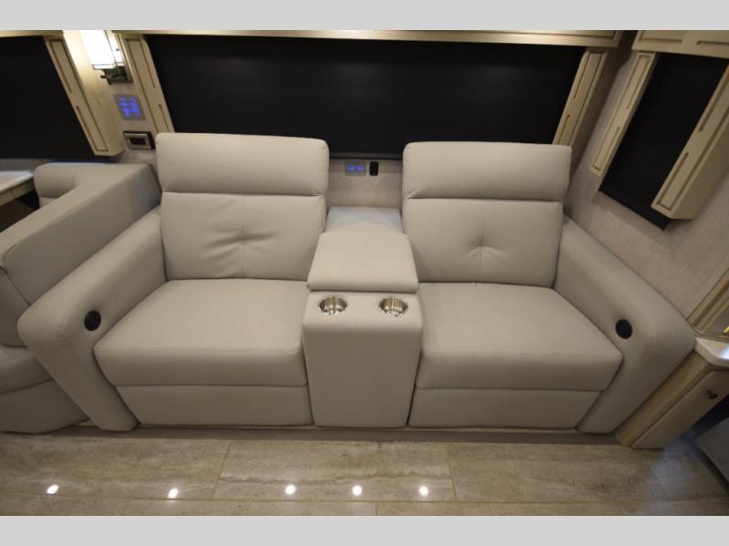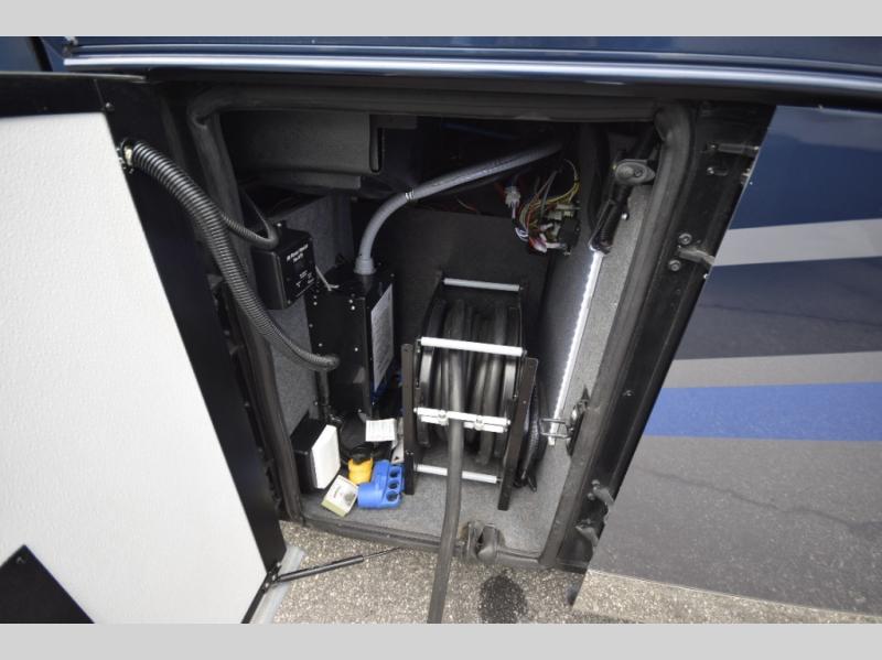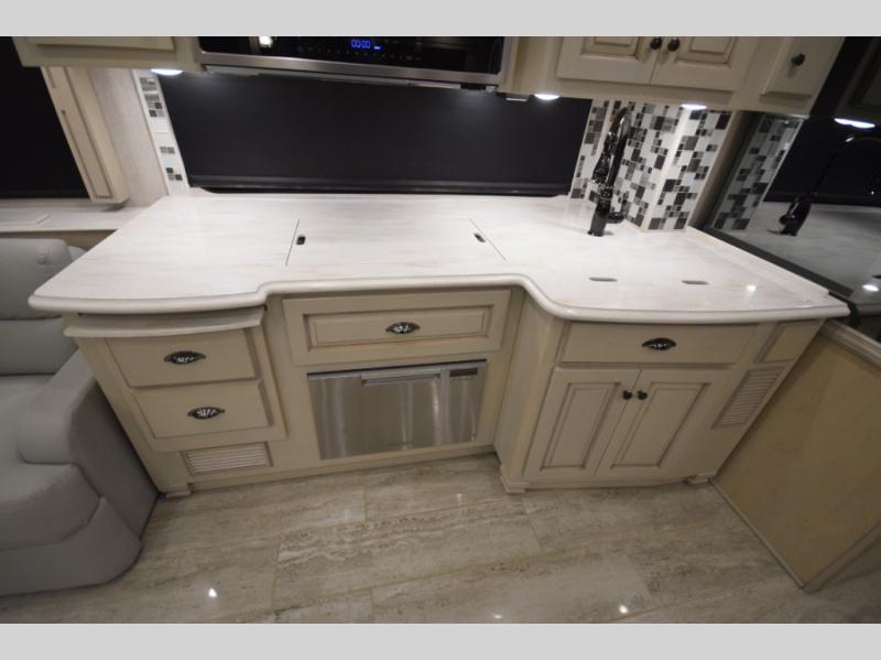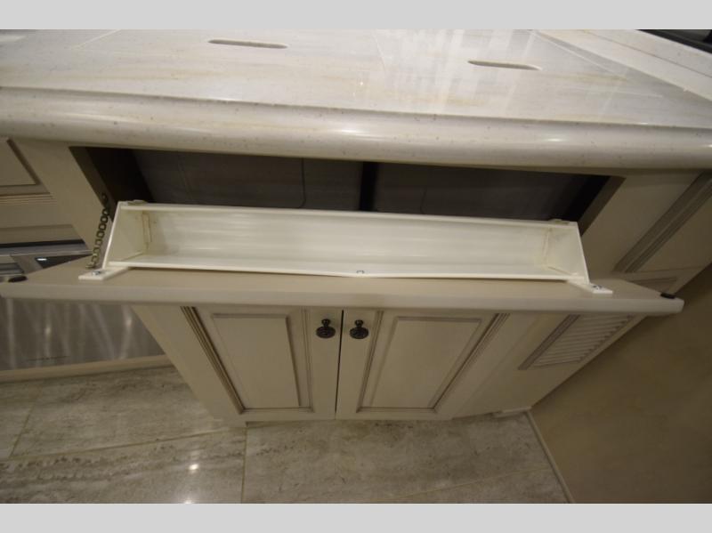 The full-wall slide, paired with two additional slide-outs, dramatically expands your living space—creating an interior that feels more like a luxury condo on wheels. Entertain guests, relax in style, or work remotely with ease from the passenger workstation or hide-a-leaf dinette.
