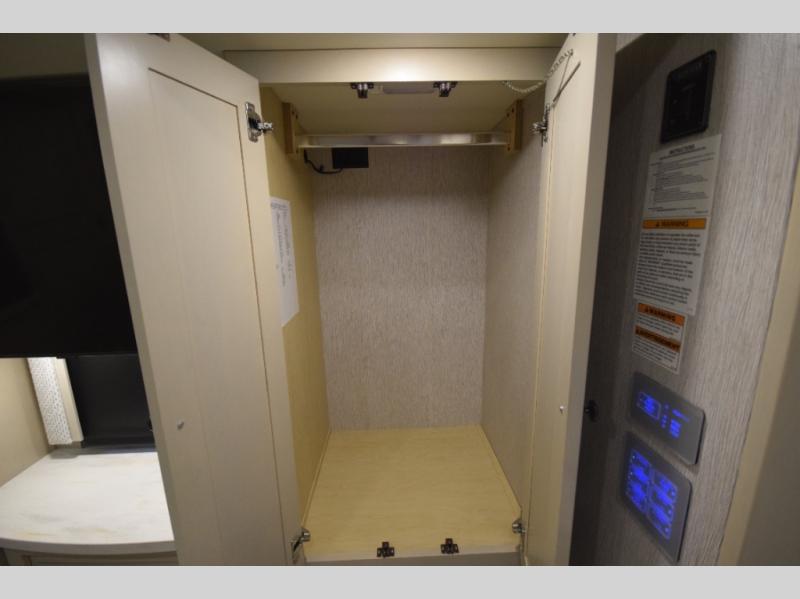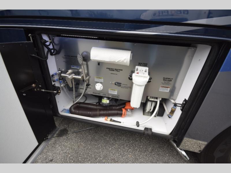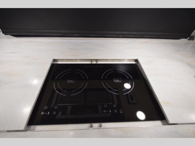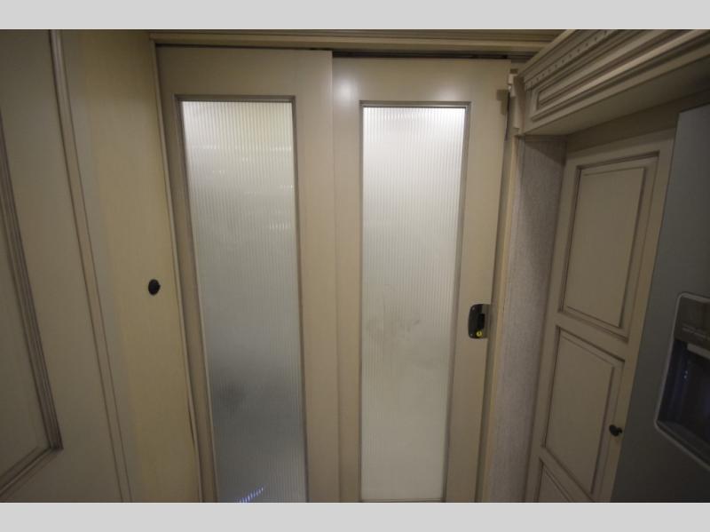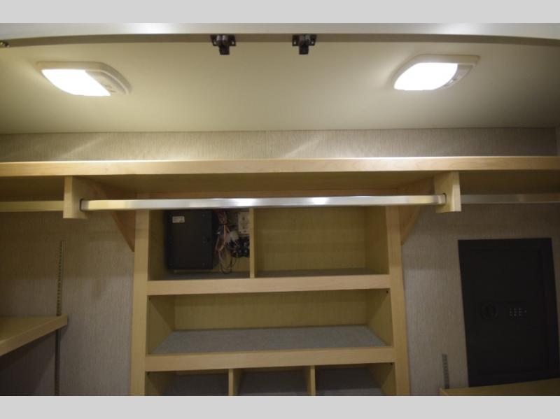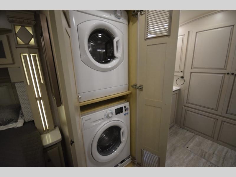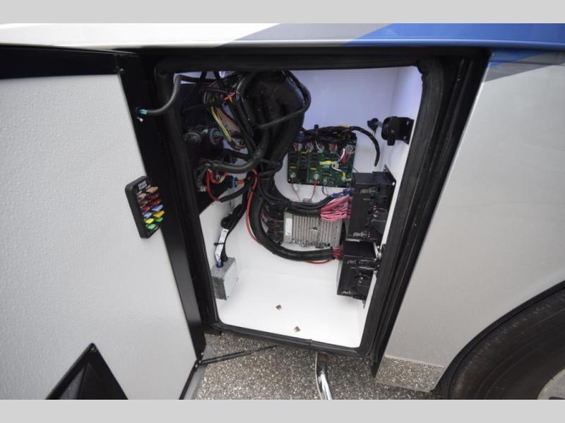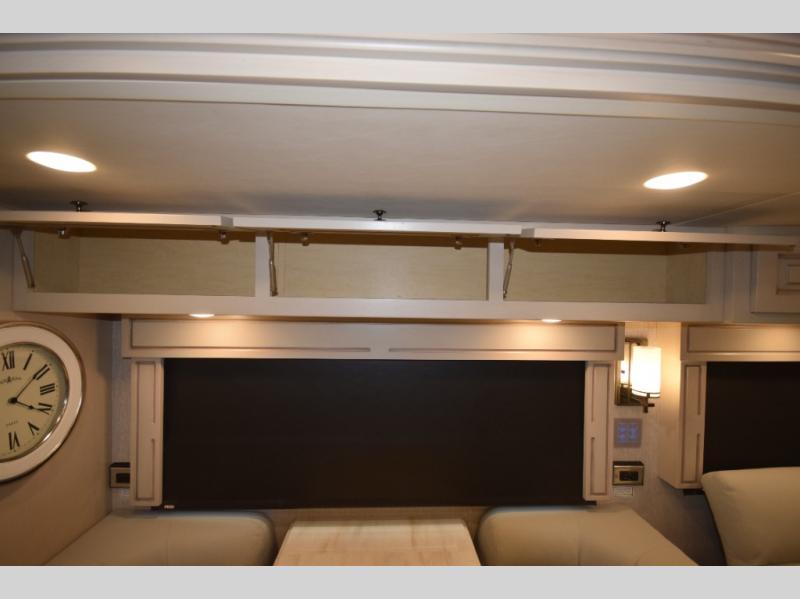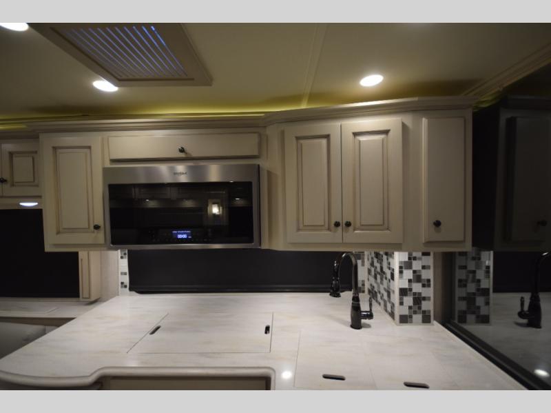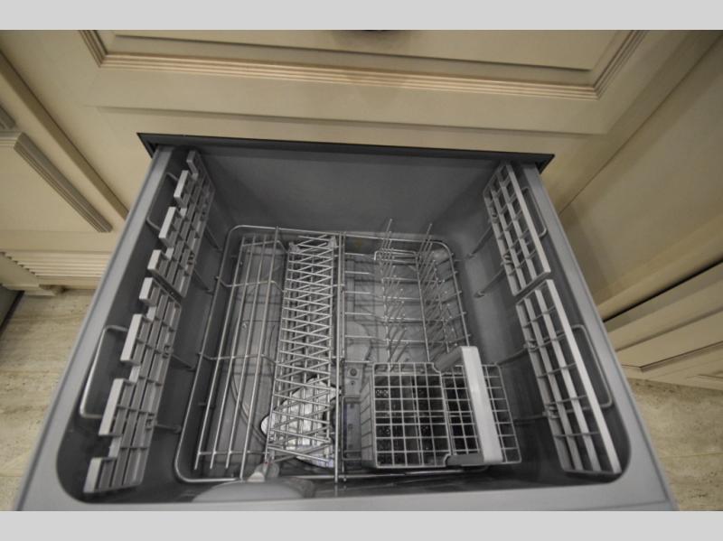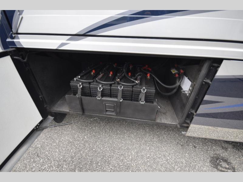 The full-wall slide, paired with two additional slide-outs, dramatically expands your living space—creating an interior that feels more like a luxury condo on wheels. Entertain guests, relax in style, or work remotely with ease from the passenger workstation or hide-a-leaf dinette.