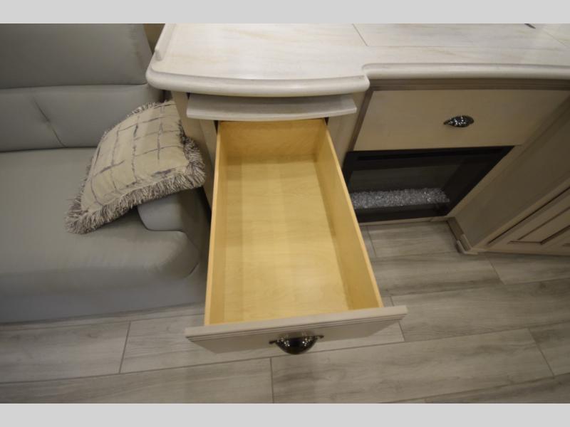 Hide-A-Leaf Dinette + Passenger Workstation – Built-in spaces to dine, work, or game