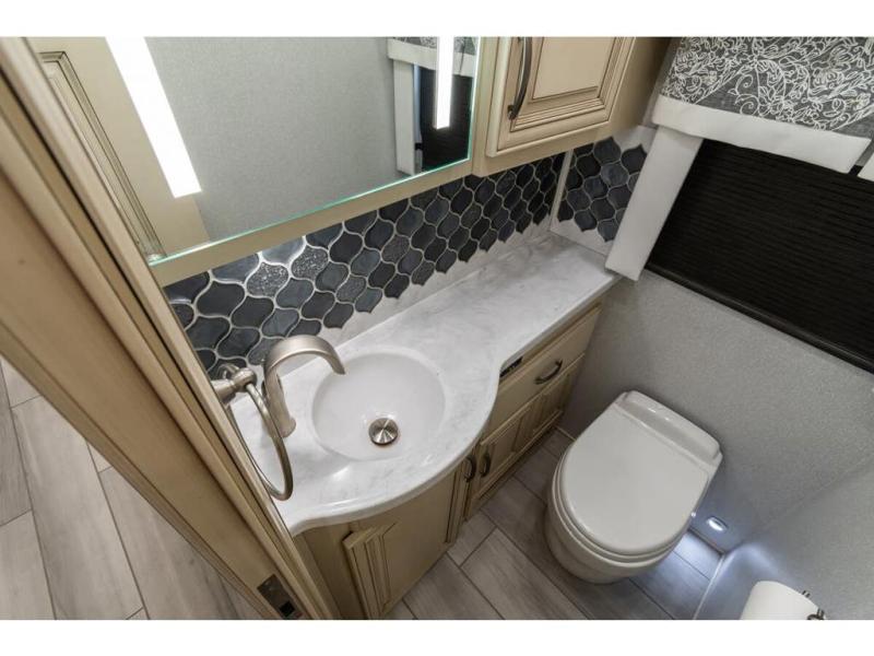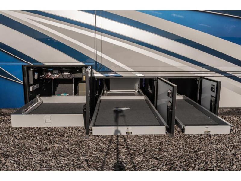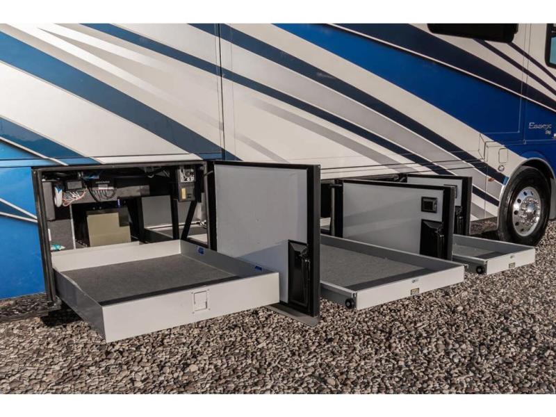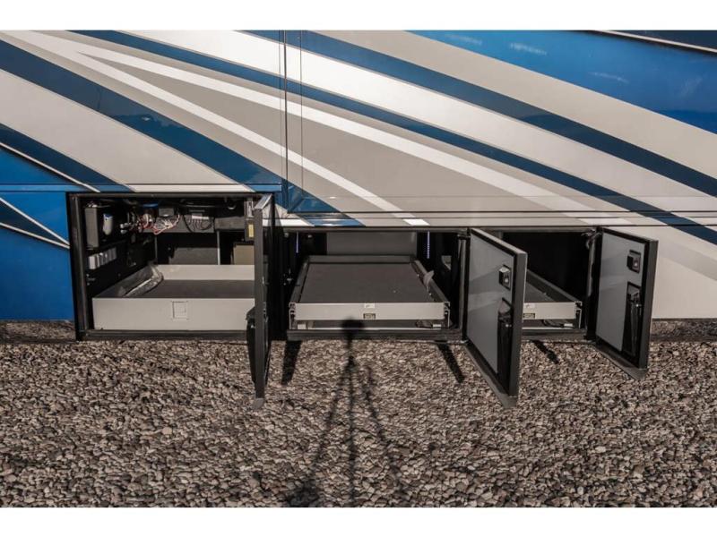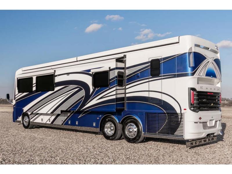 Your getaway resort starts with an Essex Class A diesel motorhome by Newmar. The Comfort Drive steering system puts you in control of your coach, plus there are memory settings for the captain's seats and plenty of safety features. Your co-pilot will love the queen-size passenger seat, along with a passenger workstation to get some work done on the way to the campground. Once you arrive at your destination, you can set up the dual Girard Nova side awnings that feature LED lights and wind sensors, and there are hydraulic leveling jacks for hassle-free set up. Each model features luxurious amenities, like the super polished solid surface countertops, the Sleep Number adjustable mattress, the residential appliances in the kitchen, and luxury tile plank flooring with new tiles. The Essex has you covered when it come to entertainment with Samsung LED TV's in the living area, bedroom, and overhead, plus there is a Bose 700 sound touch sound bar in the living room. You'll also appreciate the 12.5kW Cummins Onan diesel generator, the LED-Lit exterior storage compartments, three 15M Penguin heat pump central A/C units, and many more conveniences.