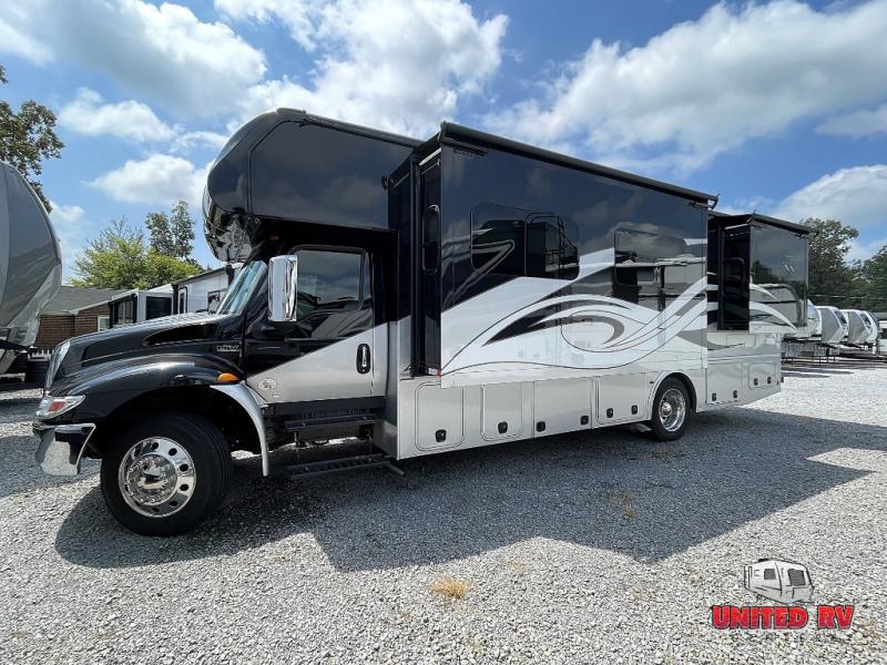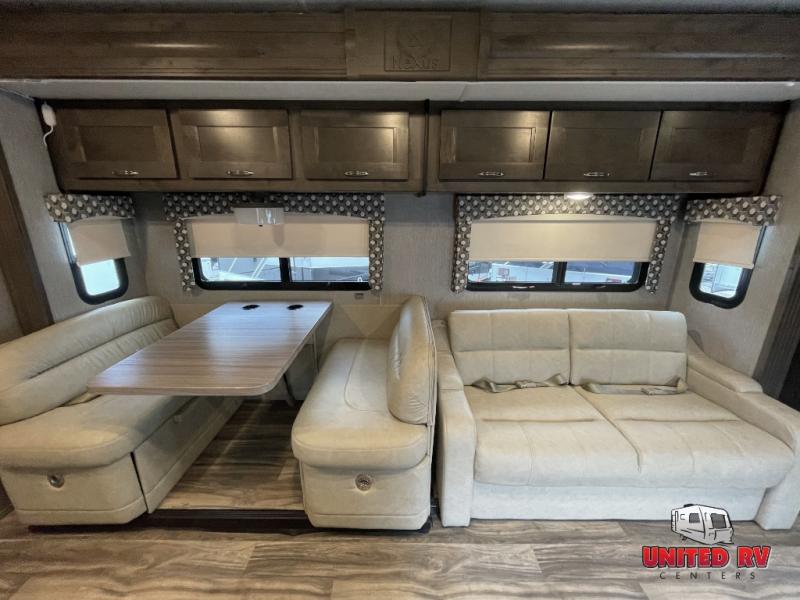If you're looking for quality, safety, and luxury in a motorhome then look no further than one of these NeXus RV Wraith Super C diesel motorhomes! An International chassis holds them together and a 6.7L Cummins ISB diesel engine coupled with a 6-speed Allison transmission powers them. They have a best in class "all steel-composite" that is up to 72% stronger for safer rides and the steel in the superstructure helps minimize potential water damage while also maximizing the thermal and sound insulation. Experience at-home touches like a touch screen stereo with USB and Bluetooth, a deluxe innerspring mattress, upgraded flooring, and night roller shades for privacy day or night. You even have an exterior security light and electric patio awning with LED lights to highlight the good times. Come find your model today!