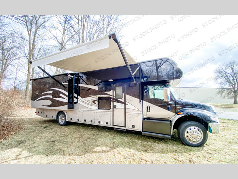 If you're looking for quality, safety, and luxury in a motorhome then look no further than one of these NeXus RV Wraith Super C diesel motorhomes! An International chassis holds them together and a 6.7L Cummins ISB diesel engine coupled with a 6-speed Allison transmission powers them. They have a best in class "all steel-composite" that is up to 72% stronger for safer rides and the steel in the superstructure helps minimize potential water damage while also maximizing the thermal and sound insulation. Experience at-home touches like a touch screen stereo with USB and Bluetooth, a deluxe innerspring mattress, upgraded flooring, and night roller shades for privacy day or night. You even have an exterior security light and electric patio awning with LED lights to highlight the good times. Come find your model today!