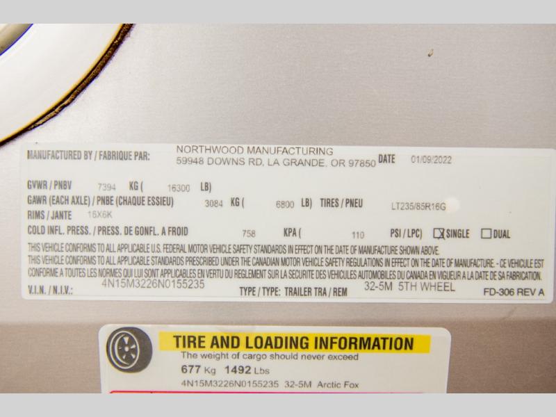 Used 2022 Northwood Arctic Fox Grande Ronde 32-5M Fifth Wheel