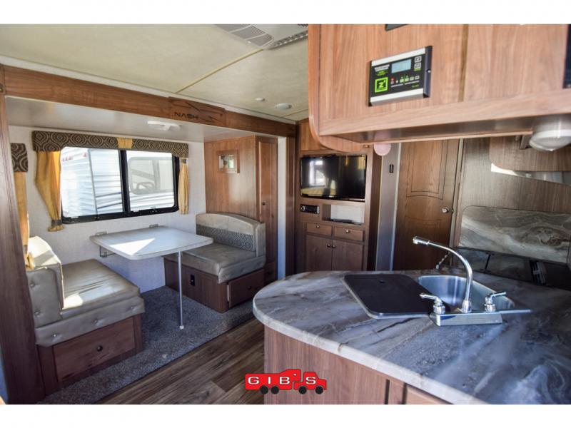 Every one of these Northwood Nash travel trailers are built off-road tough! From the Northwood custom built chassis that has been independently tested and certified to the bonded roof truss system, the easy lube axles, and shock absorbers. The one piece laminate fiberglass walls, the structural joints reinforced with steel Hurricane plates, and the 5/8" T & G plywood decking ensures these units will hold up through any adventure. The interiors are also built sturdy with the dual rack and pinion ram slide room, the ultimate durability floor structure with commercial grade linoleum with a 20 mil surface, and the custom built cabinetry with a face frame construction that is mounted to the wall and ceiling. There is also a long list of standard features to make your next camping adventure a great one!