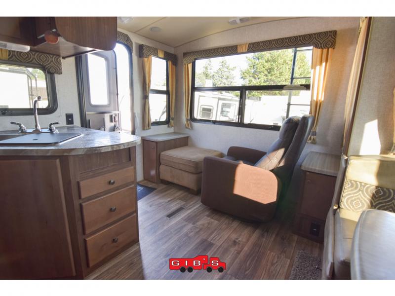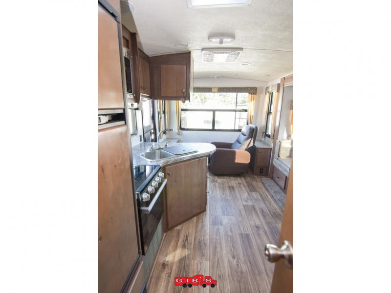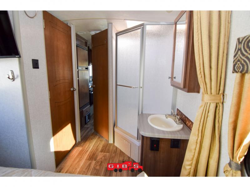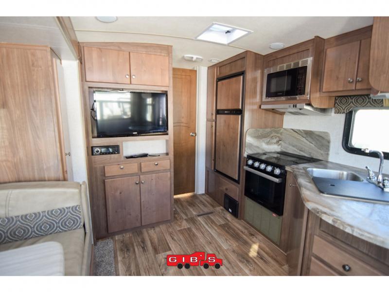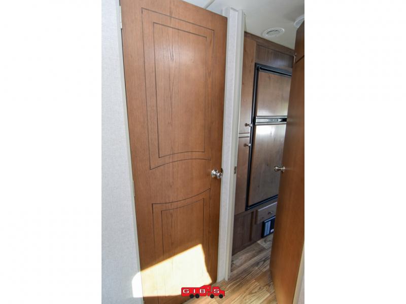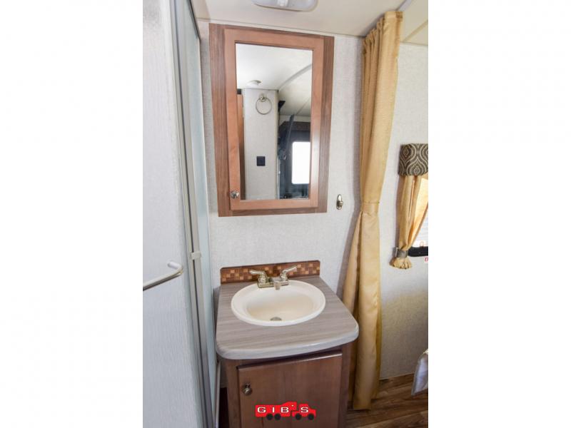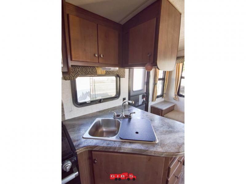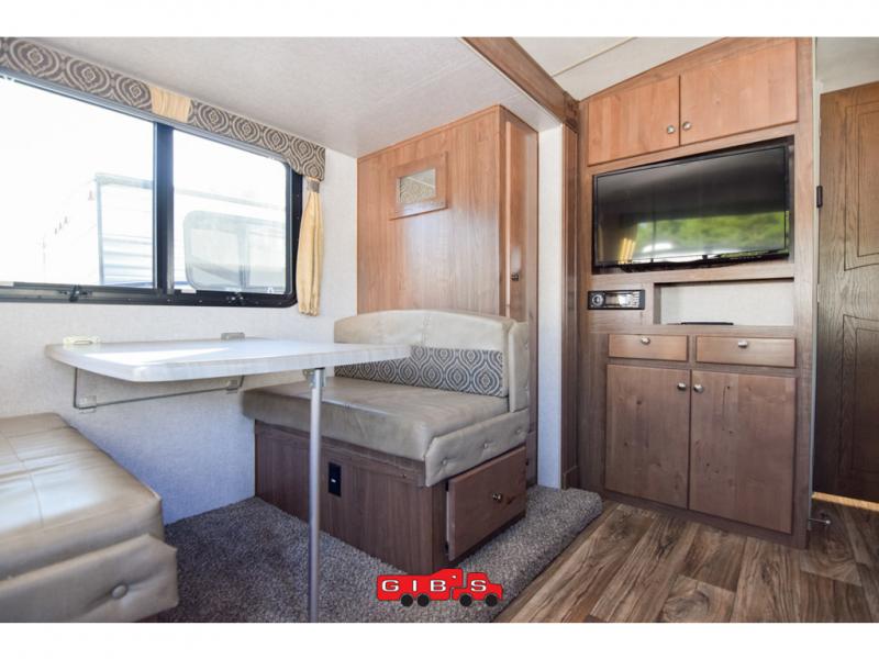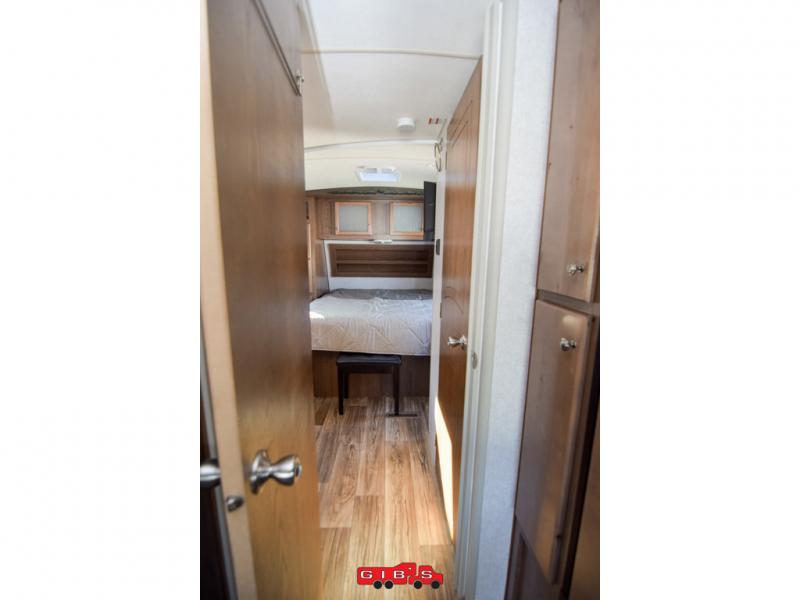 This is the perfect couples trailer with space for guests to stay the night! Beginning with the dual entry doors allowing you access to the front bedroom or the rear living area, this is a convenience you didn't even know you would love! The cook will have full amenities to make meals, plus a pantry for dry goods, and the slide out dinette offers more floor space to relax while playing games or relaxing on the sofa. The bathroom is split with a private toilet room from the angled shower and sink which are within the bedroom, or you can close the curtain for privacy, and the walk-around RV queen bed will give you a good night's sleep.