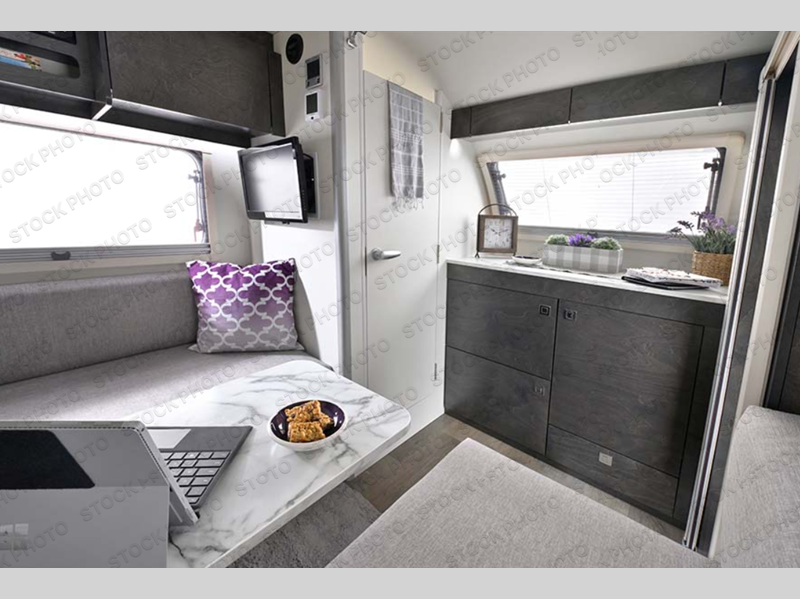 With any TAB 320 teardrop trailer by nüCamp RV, the interior offers custom Ohio-Amish cabinetry, soft close cabinetry, a custom screen/shade system, and a wet bath with a cassette and built-in sink. The iconic teardrop design offers an easy-to-tow setup with amenities found in much bigger trailers. Some other highlights include the Alde central heat/hot water system, the central air conditioner, the Solar Roof package, and the Nautilus water management system. There is a Boondock package option available that would provide features such as aggressive off-road tires, an aluminum utility platform, a Boondock entry handle and graphics, plus more!