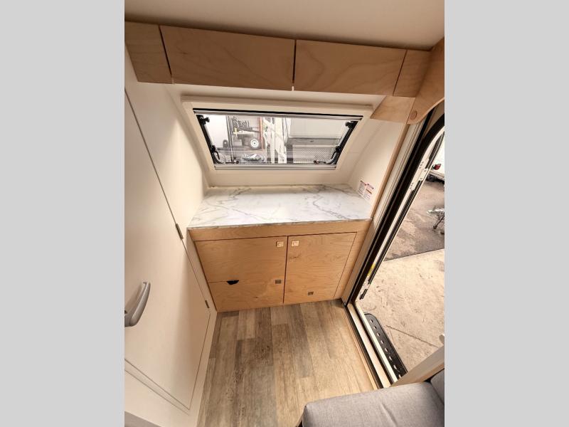 With any TAB 320 teardrop trailer by nüCamp RV, the interior offers custom Ohio-Amish cabinetry, soft close cabinetry, a custom screen/shade system, and a wet bath with a cassette and built-in sink. The iconic teardrop design offers an easy-to-tow setup with amenities found in much bigger trailers. Some other highlights include the Alde central heat/hot water system, the central air conditioner, the Solar Roof package, and the Nautilus water management system. There is a Boondock package option available that would provide features such as aggressive off-road tires, an aluminum utility platform, a Boondock entry handle and graphics, plus more!