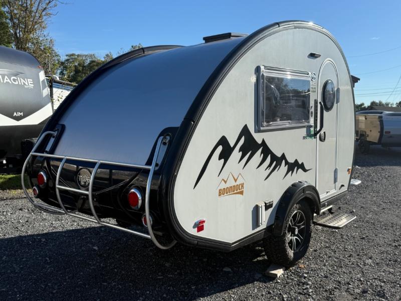 With any TAB 320 teardrop trailer by nüCamp RV, the interior offers custom Ohio-Amish cabinetry, soft close cabinetry, a custom screen/shade system, and a wet bath with a cassette and built-in sink. The iconic teardrop design offers an easy-to-tow, setup with amenities found in much bigger trailers. Some other highlights include the Alde central heat/hot water system, the central air conditioner, the Solar Roof package, and the Nautilus water management system. There is a Boondock package option available that would provide features such as aggressive off-road tires, an aluminum utility platform, a Boondock entry handle and graphics, plus more!