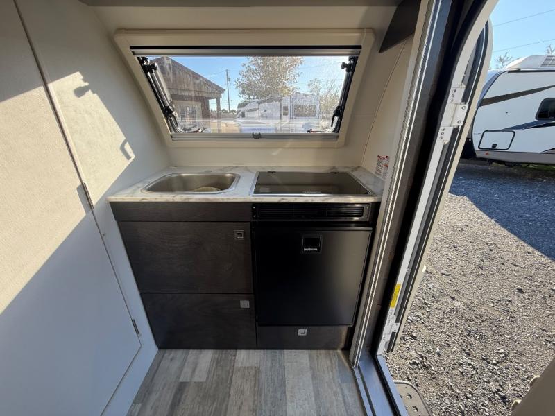 Whether you make plans or enjoy last-minute trips, this trailer offers all the essentials for a perfect weekend! From the interior kitchen, the wet bath and the U-shaped dinette that offers two sleeping configurations, you will have everything you need. You can choose to setup a full bed or split beds, keep your electronics charged with the dual 110/USB ports, make warm meals using the two burner glass-top stove, and store cold items in the 12V refrigerator. And the wet bath or the external shower will keep you clean and refreshed while camping.