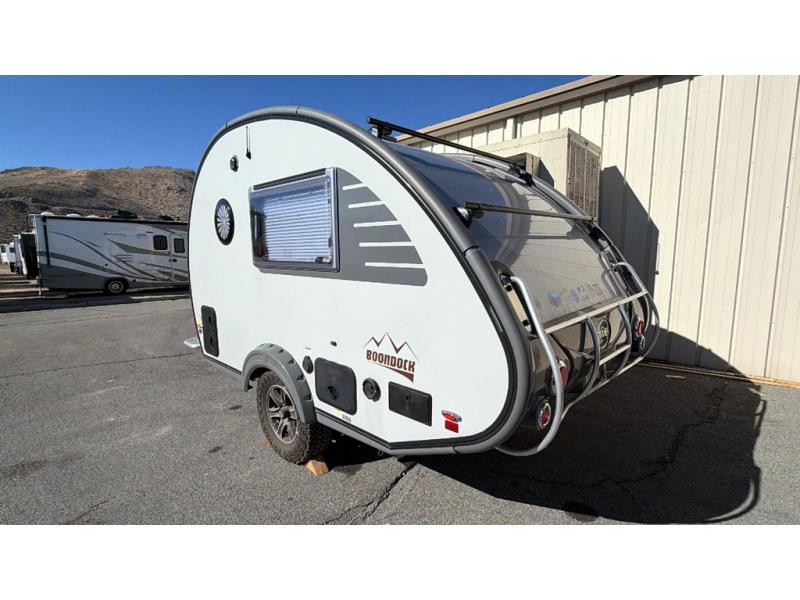 With any TAB 320 teardrop trailer by nüCamp RV, the interior offers custom Ohio-Amish cabinetry, soft close cabinetry, a custom screen/shade system, and a wet bath with a cassette and built-in sink. The iconic teardrop design offers an easy-to-tow, setup with amenities found in much bigger trailers. Some other highlights include the Alde central heat/hot water system, the central air conditioner, the Solar Roof package, and the Nautilus water management system. There is a Boondock package option available that would provide features such as aggressive off-road tires, an aluminum utility platform, a Boondock entry handle and graphics, plus more!