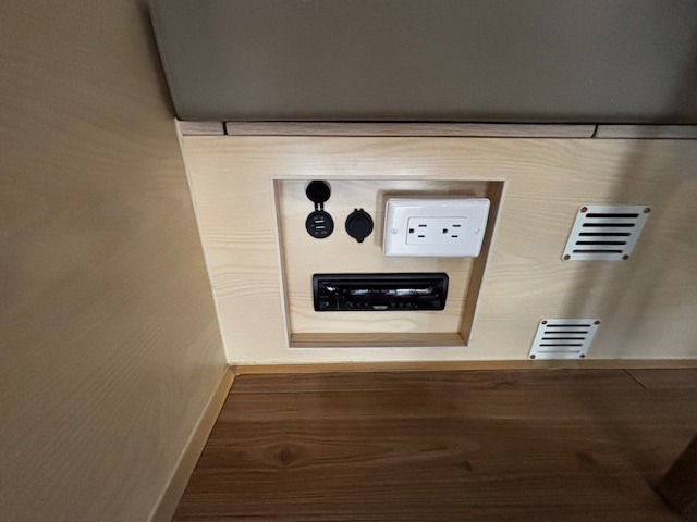 USB and 12V power sockets throughout for charging devices off-grid