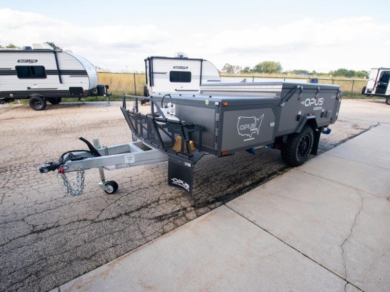 The Opus Camper OPUS folding pop-up camper is created for adventure! An all-terrain chassis, off-road tires, and independent coil suspension allow you to go wherever you want to go. The compact design makes it easy to take the OPUS down back roads and beaten paths, but once you settle on a destination, the OPUS opens up into an accommodating base camp for you and your fellow travelers. As you travel, you'll find that the extra storage components will be extremely useful.