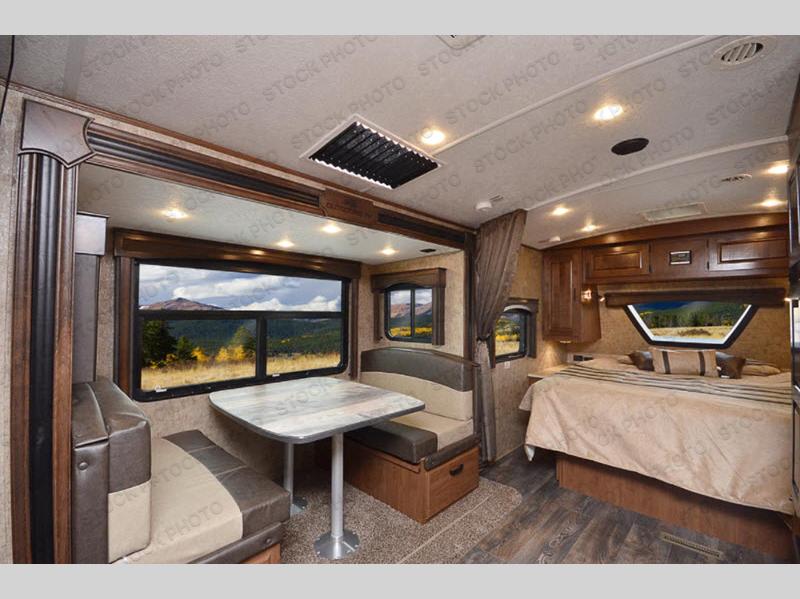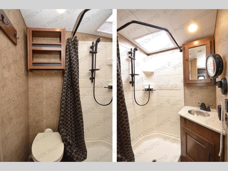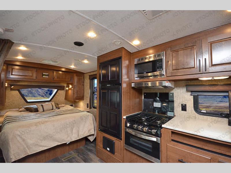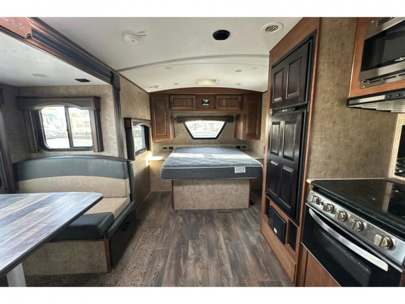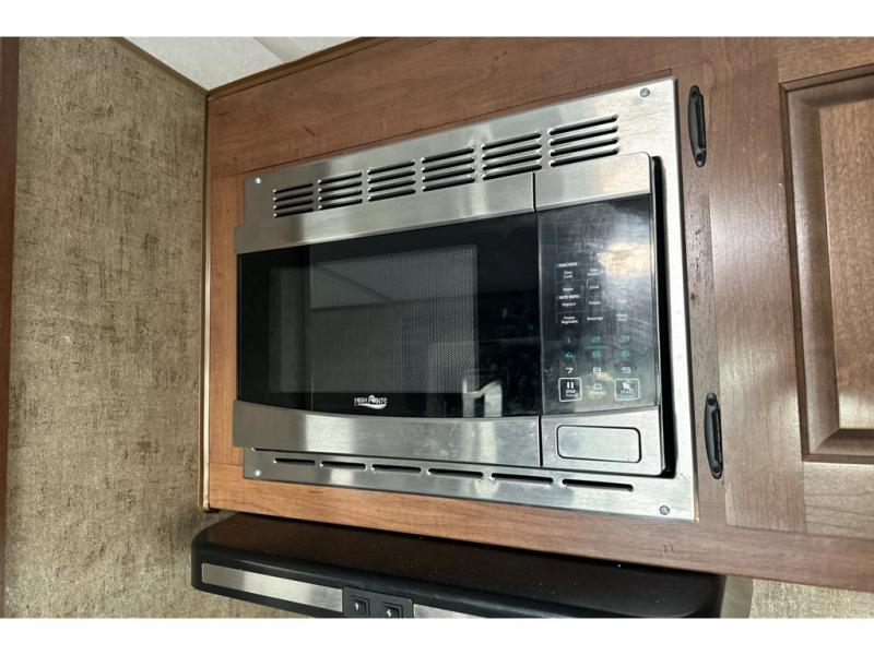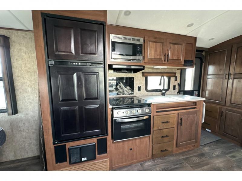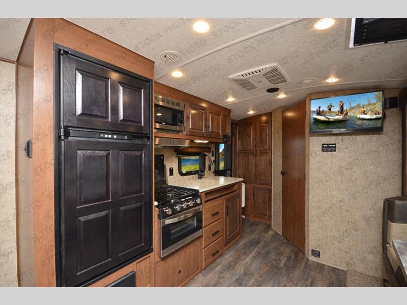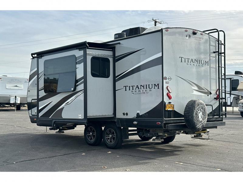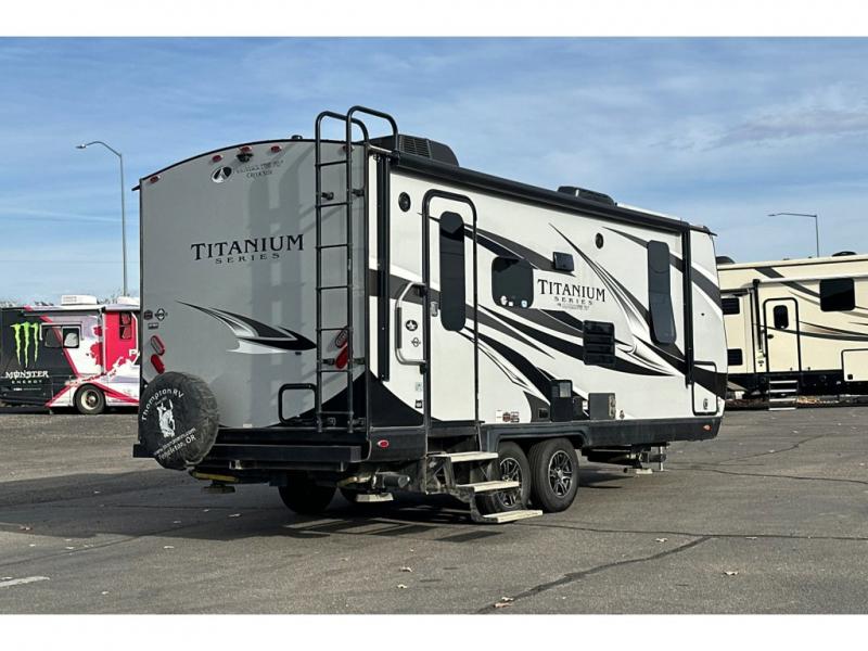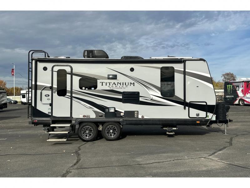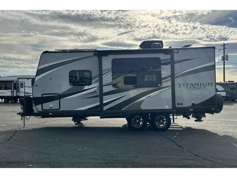 Step inside this Titanium Series travel trailer and experience a luxurious camping trip! With two skylights, LED energy saving lights, and XL panoramic windows, you will always enjoy a bright atmosphere. When you don't feel like preparing something new on the chrome/glass sunken range with sealed burners, you can grab some leftovers from the Norcold 7 cu. ft. refrigerator and pop it into the stainless steel microwave for a quick meal. When you're ready to wind down your nights, you can head to the mountain dinette and play a card game while you watch a movie in the background with the 28" swing out LED HDTV!