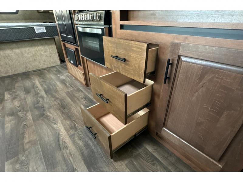 With a Mountain Tough construction and a Climate Designed Four Seasons package, you can take any one of these Outdoor RV Creek Side Titanium Series travel trailers to a mountain state or even Western Canada! They have a compact design that allows for a light-duty tow vehicle to haul it with a dry weight around 6,000 lbs. and floor lengths ranging from 18' to 21'. The custom built off-road chassis has USA sourced steel, and the Off Road X4 Suspension package includes KYB HD gas shocks, a MorRyde CRE 3000 suspension, and a MorRyde shackle kit with bronze bushings and greaseable fittings so you can feel confident going off the beaten path. Come see all of the other exterior and interior features that will make any camping trip comfortable and easy today!