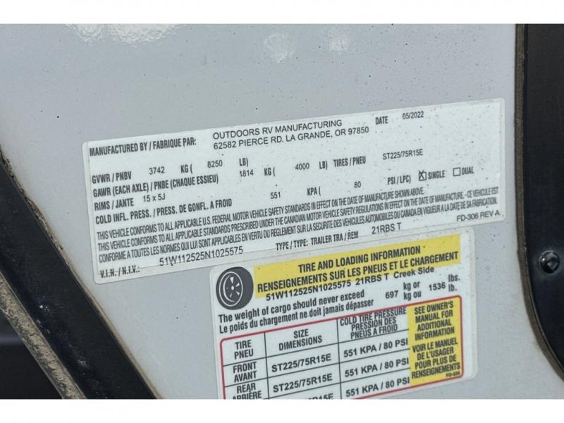 Used 2022 Outdoors RV Creek Side Titanium Series 21RBS TITANIUM Travel Trailer