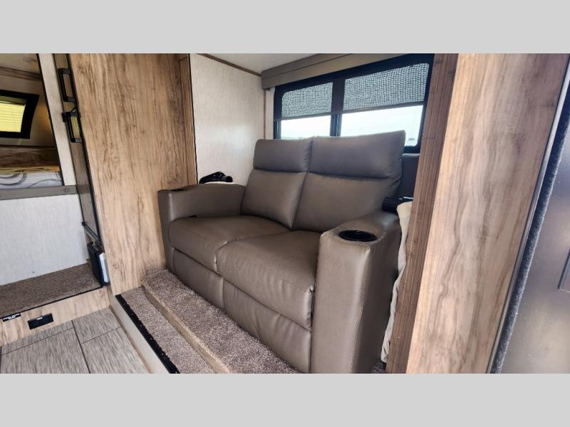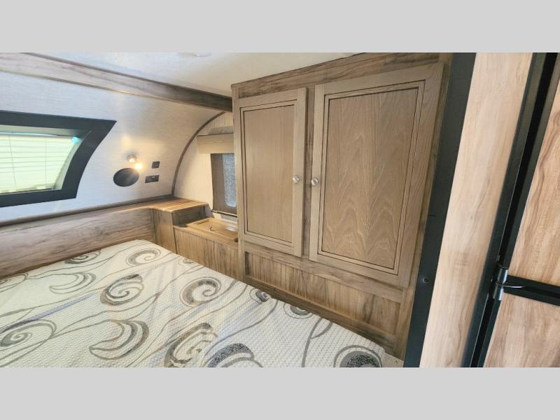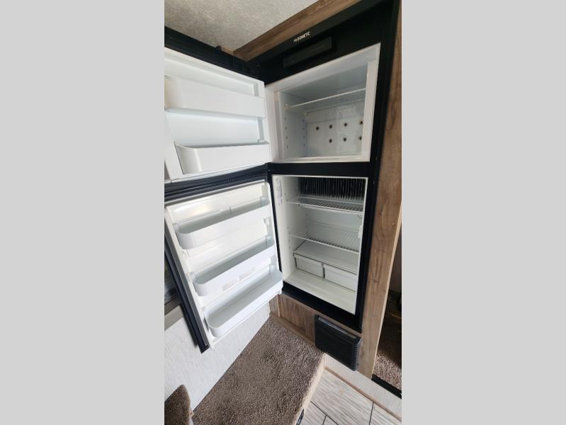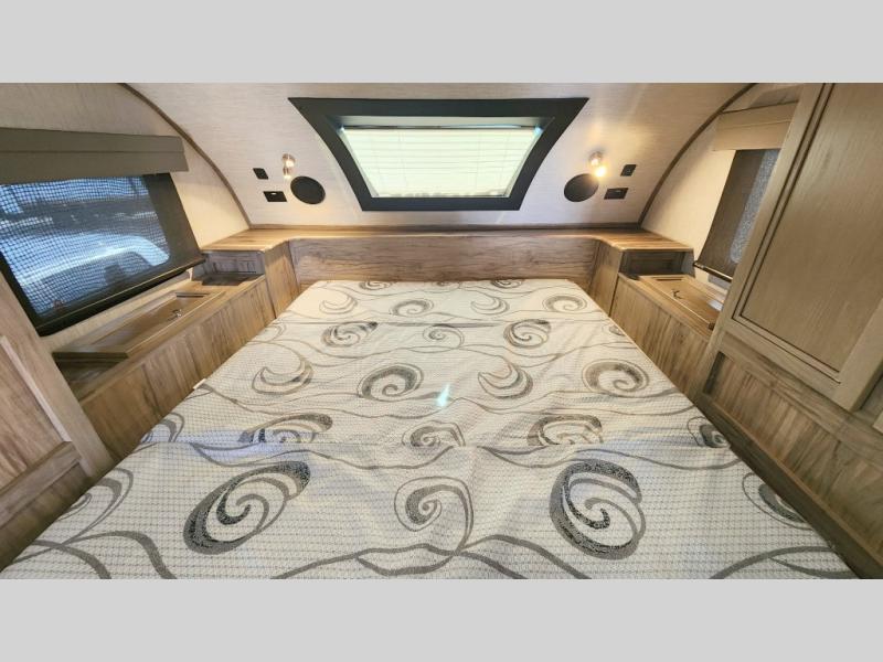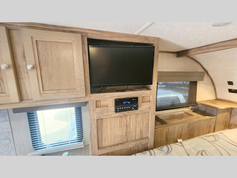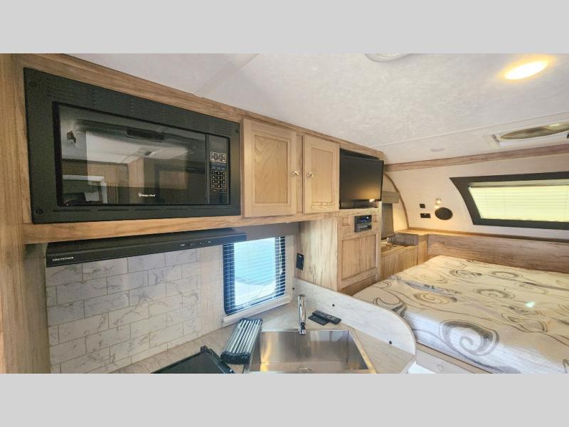 You will love all of the extra space provided in this hard side truck camper with the 42" x 62" booth dinette slide! If you're not needing the additional sleeping space provided by the dinette, choose the optional theater seating! Prepare your best meals with the three burner cooktop, store your canned goods in the wardrobe/pantry, and and leftovers in the two way 6 cu. ft. refrigerator, plus there is a microwave to pop a bag of popcorn at night. After a fun day of fishing, freshen up in the wet bath and relax on the front queen bed with a wrap around night stand, chests on either side, and entertainment center, and a closet for your clothes!