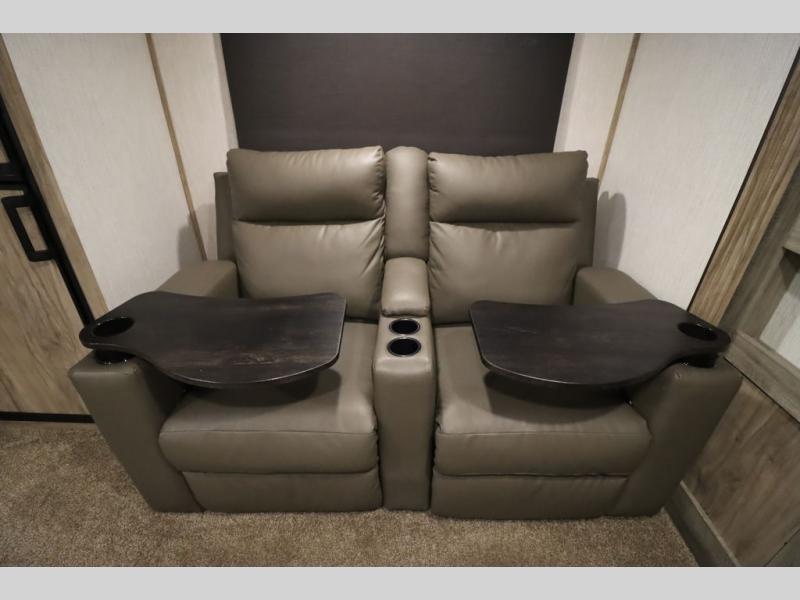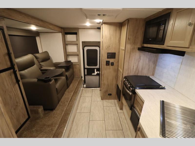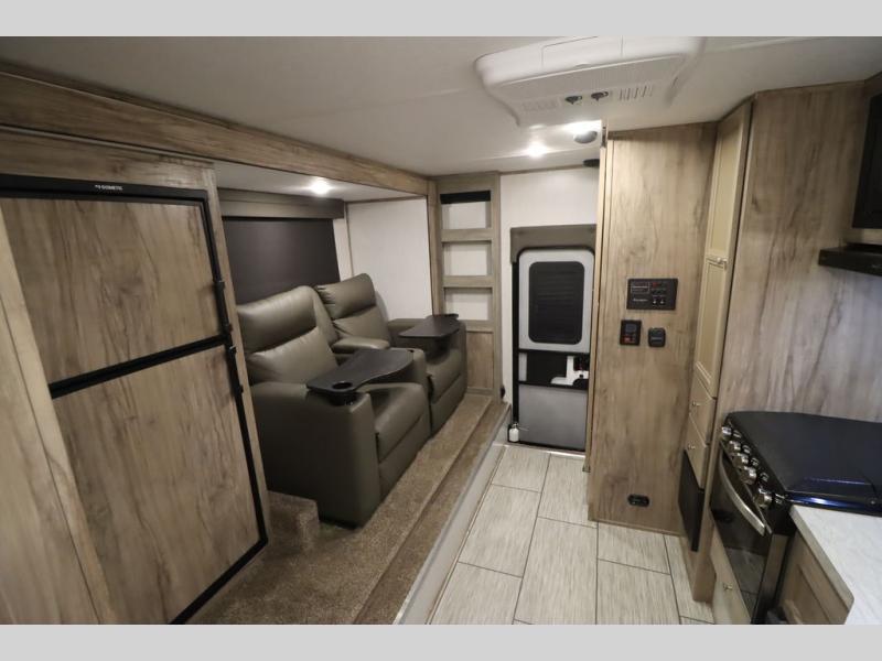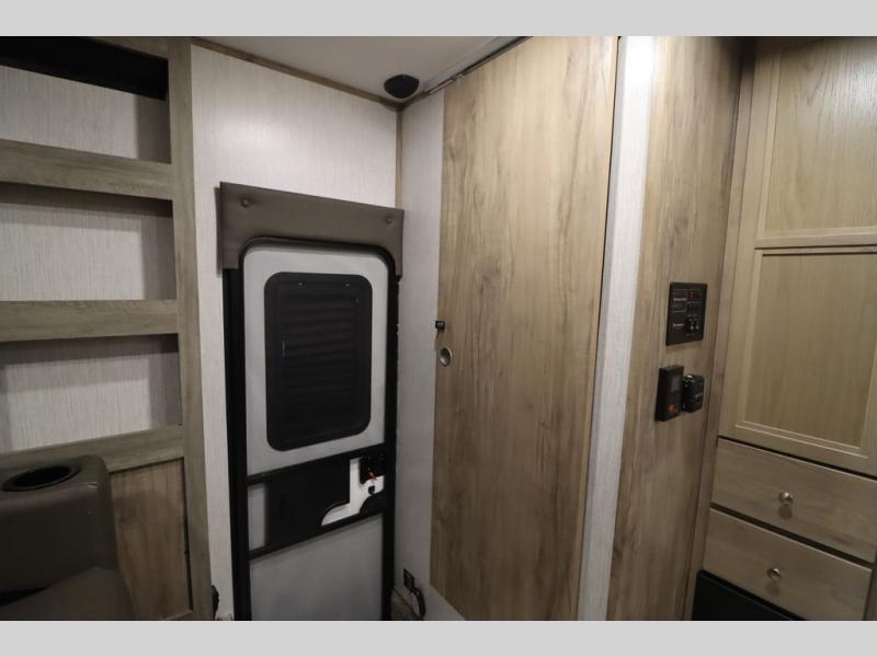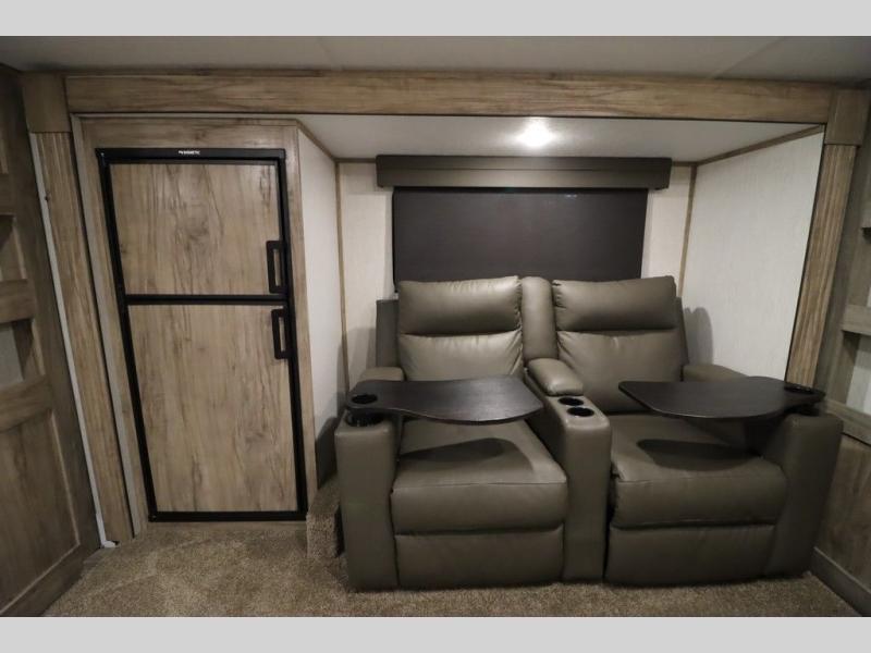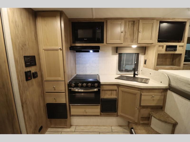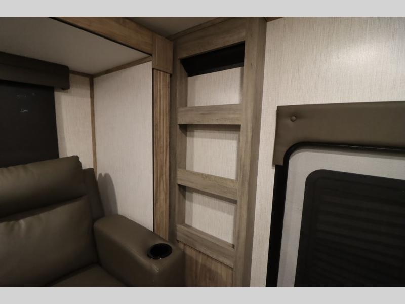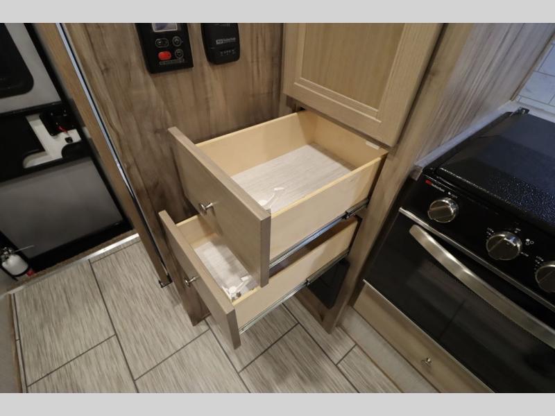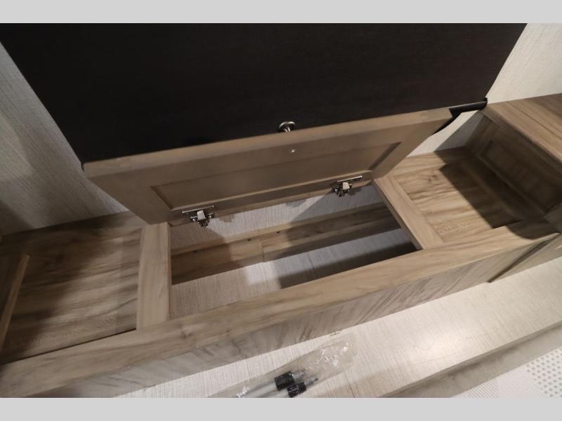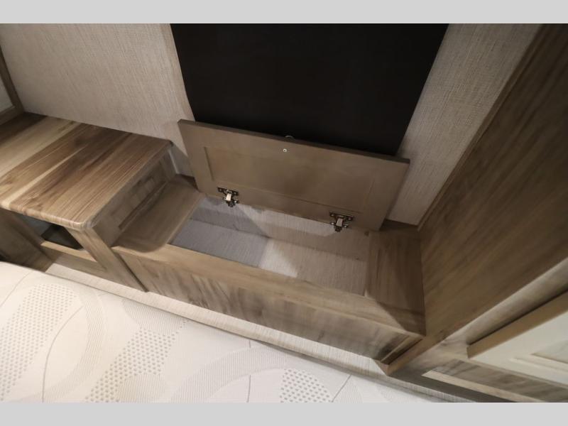 Start adventuring in true comfort with this hard side truck camper! The 40" x 69" booth dinette slide offers a comfortable place to enjoy your meals and even transform into an extra sleeping space, plus it is right next to the two way 6 cu. ft. refrigerator so you don't have to go far for a cold beverage. You can also choose the optional theater seating in place of the dinette for even more comfort. The wardrobe/pantry is good for double use and is next to the wet bath so you can easily grab a towel. Enjoy a good night's rest each night on the front queen bed with a wrap around nightstand, chests on either side, an entertainment center, and a closet to keep your clothes looking their best!