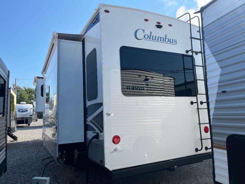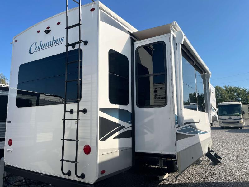 Experience a different camping life with residential furnishings and high end features in each one of these Palomino Columbus fifth wheels! The 101" wide body lets you walk around more throughout and the all-welded aluminum-frame superstructure has a snap-in ceiling molding to hold up through every adventure. Don't leave any of your gear behind either when you can easily store it in the climate controlled drop frame storage area. On the exterior, you'll find a heated utility convenience center, an outside shower to keep the dirt outside where it belongs, and magnetic compartment door holds to keep them from falling on you as you grab your items. Plus, there are some modern features that will really seal the deal like the Wi-Fi Booster with 4G LTE capability, the central vacuum system, the preparations for a washer/dryer, and the preparations for 200W solar panels with 6V batteries.