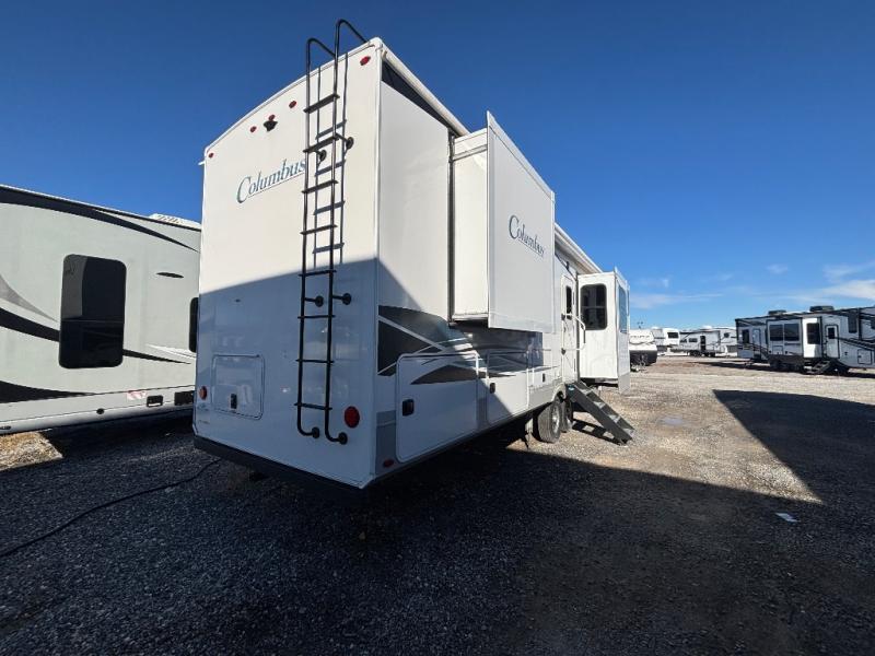 Experience a different camping life with residential furnishings and high end features in each one of these Palomino Columbus fifth wheels! The 101" wide body lets you walk around more throughout and the all-welded aluminum-frame superstructure has a snap-in ceiling molding to hold up through every adventure. Don't leave any of your gear behind either when you can easily store it in the climate controlled drop frame storage area. On the exterior, you'll find a heated utility convenience center, an outside shower to keep the dirt outside where it belongs, and magnetic compartment door holds to keep them from falling on you as you grab your items. Plus, there are some modern features that will really seal the deal like the Wi-Fi Booster with 4G LTE capability, the central vacuum system, the preparations for a washer/dryer, and the preparations for 200W solar panels with 6V batteries.