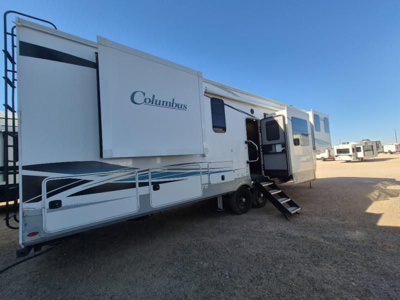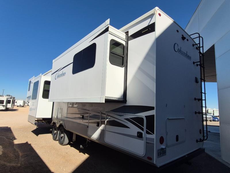 Experience a different camping life with residential furnishings and high end features in each one of these Palomino Columbus fifth wheels! The 101" wide body lets you walk around more throughout and the all-welded aluminum-frame superstructure has a snap-in ceiling molding to hold up through every adventure. Don't leave any of your gear behind either when you can easily store it in the climate controlled drop frame storage area. On the exterior, you'll find a heated utility convenience center, an outside shower to keep the dirt outside where it belongs, and magnetic compartment door holds to keep them from falling on you as you grab your items. Plus, there are some modern features that will really seal the deal like the Wi-Fi Booster with 4G LTE capability, the central vacuum system, the preparations for a washer/dryer, and the preparations for 200W solar panels with 6V batteries.