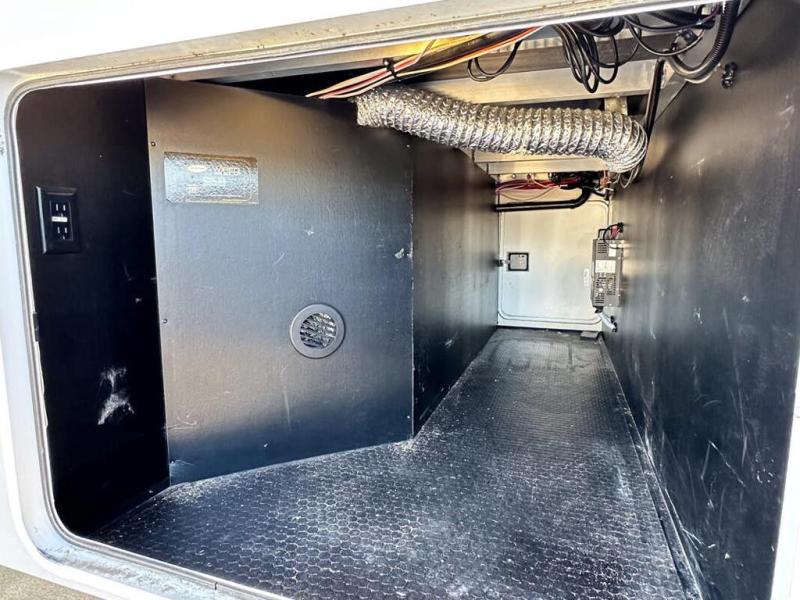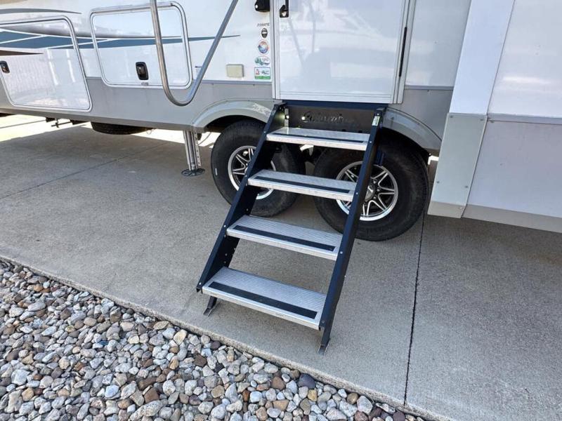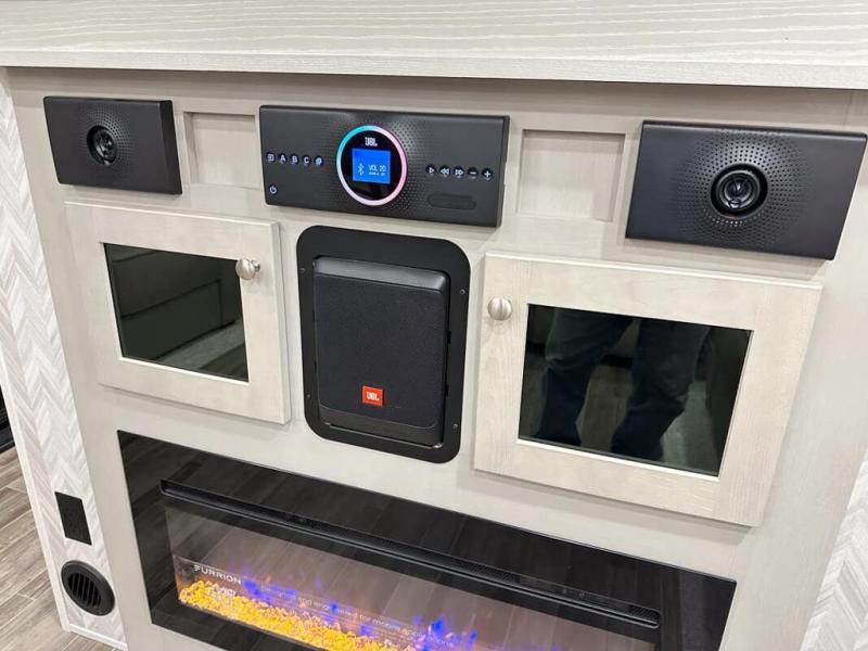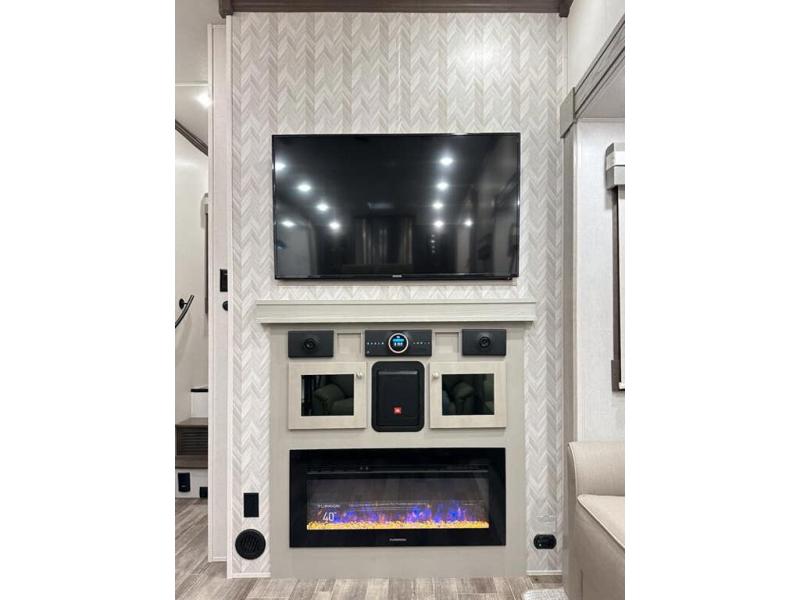 This RV features LCI hydraulic levelling system, aluminum wheels, full body paint, dual A/C's, water manifold, patio awning, pass through storage, docking lights, water filtration system, inverter, ladder, power electrical reel, exterior shower, central vacuum, heated floors, 7 foot ceiling, fireplace, multi-plex, residential refrigerator with ice maker, 3 burner gas range with oven, solid surface counter, theater seats and much more.