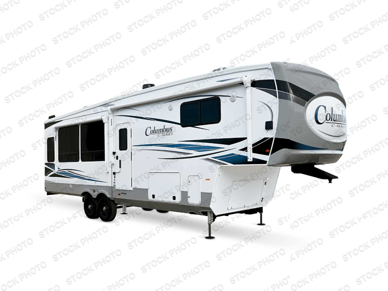 With each Columbus C-Series fifth wheel by Palomino you will enjoy easy set-up thanks to the 6 point hydraulic leveling system, and the 12V heat pads on the holding tanks allow you to travel during any season. Each model is constructed with a 101" wide body, climate controlled drop frame storage, and a Mor/Ryde Cre3000 suspension system. The interior offers large framed tinted windows throughout to maximize your outdoor views, upgraded true solid surface countertops in the kitchen, solid wood entertainment and end table tops, plus residential high-end dining chairs with storage. Don't just travel with the basics, take a Columbus C-Series along and enjoy the residential details!