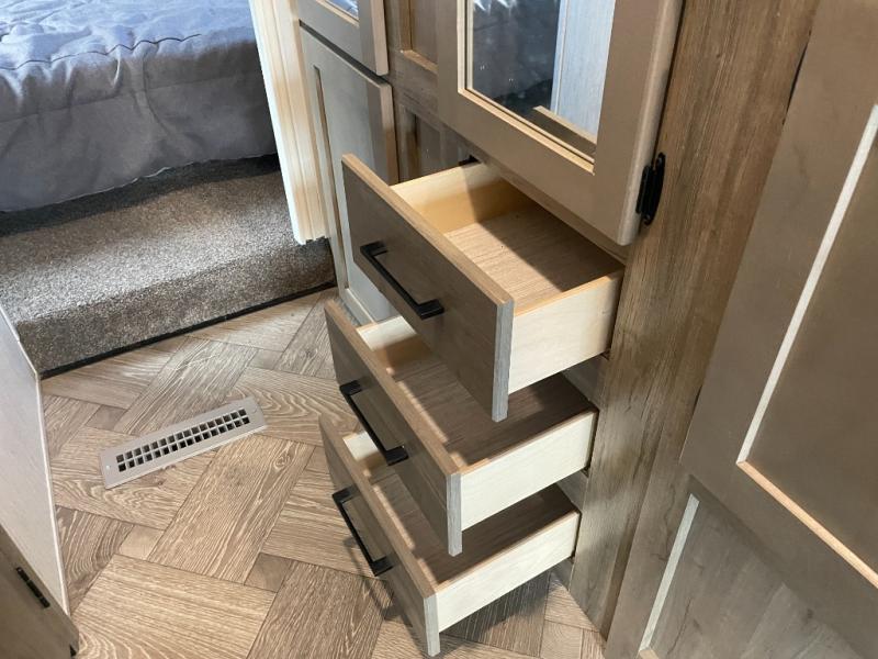 If you're looking for family-fun adventure then you need one of these Palomino Puma fifth wheels, travel trailers, or toy haulers! They are built rugged, easy to tow, and jam packed with features. The Darco wrapped underbelly will protect your units vitals through every season and the AlphaPly roofing membrane covers it. They also have super lube axles and a powder coated frame. Their luxurious interiors feature a spice rack and built-in knife rack in the kitchen, USB charging ports to keep your electronics at 100%, and high density foam mattresses for a good night's rest. The required Advantage package comes with night roller shades for privacy at night, two outside speakers to crank up the tunes while you play cornhole, and an outside shower to keep the dirt outside where it belongs, plus so much more!