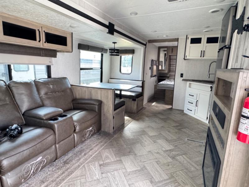 If you're looking for family-fun adventure then you need one of these Palomino Puma fifth wheels, travel trailers, or toy haulers! They are built rugged, easy to tow, and jam packed with features. The Darco wrapped underbelly will protect your units vitals through every season and the AlphaPly roofing membrane covers it. They also have super lube axles and a powder coated frame. Their luxurious interiors feature a spice rack and built-in knife rack in the kitchen, USB charging ports to keep your electronics at 100%, and high density foam mattresses for a good night's rest. The required Advantage package comes with night roller shades for privacy at night, two outside speakers to crank up the tunes while you play cornhole, and an outside shower to keep the dirt outside where it belongs, plus so much more!