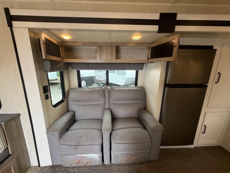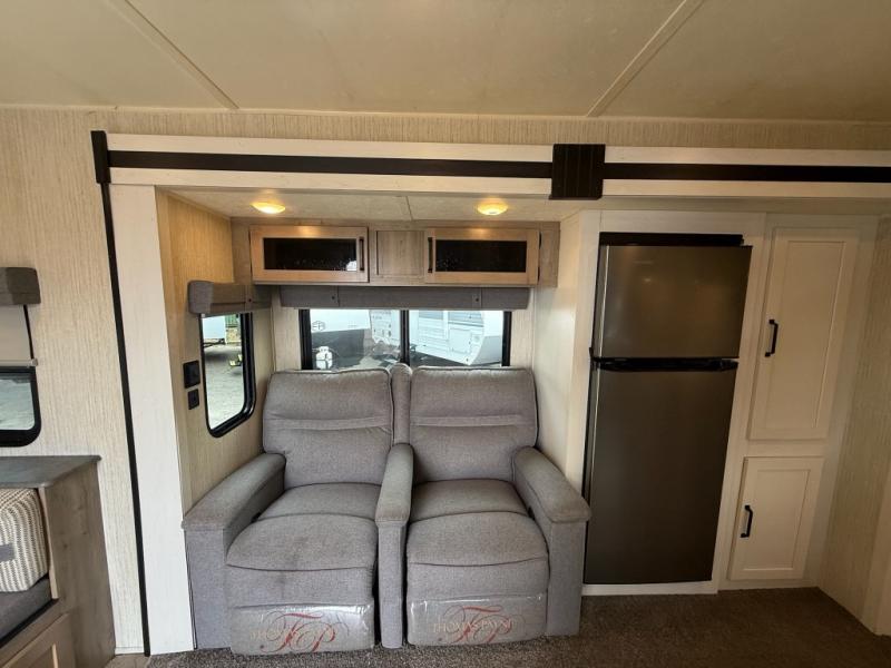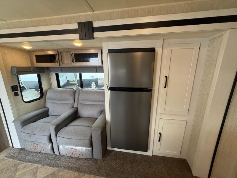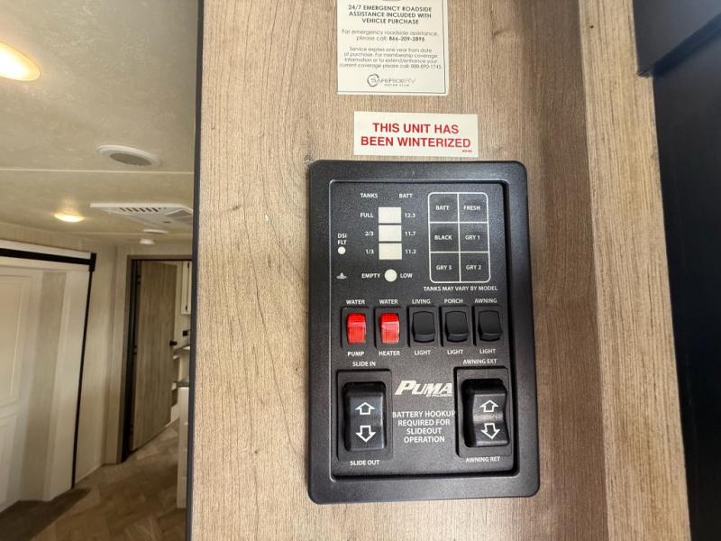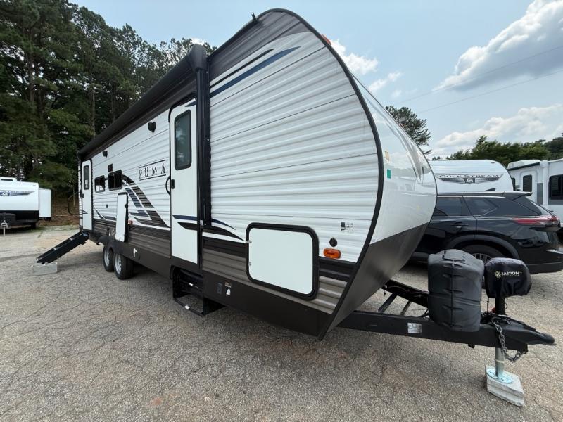 If you're looking for family-fun adventure then you need one of these Palomino Puma fifth wheels, travel trailers, or toy haulers! They are built rugged, easy to tow, and jam packed with features. The Darco wrapped underbelly will protect your units vitals through every season and the AlphaPly roofing membrane covers it. They also have super lube axles and a powder coated frame. Their luxurious interiors feature a spice rack and built-in knife rack in the kitchen, USB charging ports to keep your electronics at 100%, and high density foam mattresses for a good night's rest. The required Advantage package comes with night roller shades for privacy at night, two outside speakers to crank up the tunes while you play cornhole, and an outside shower to keep the dirt outside where it belongs, plus so much more!