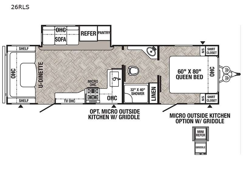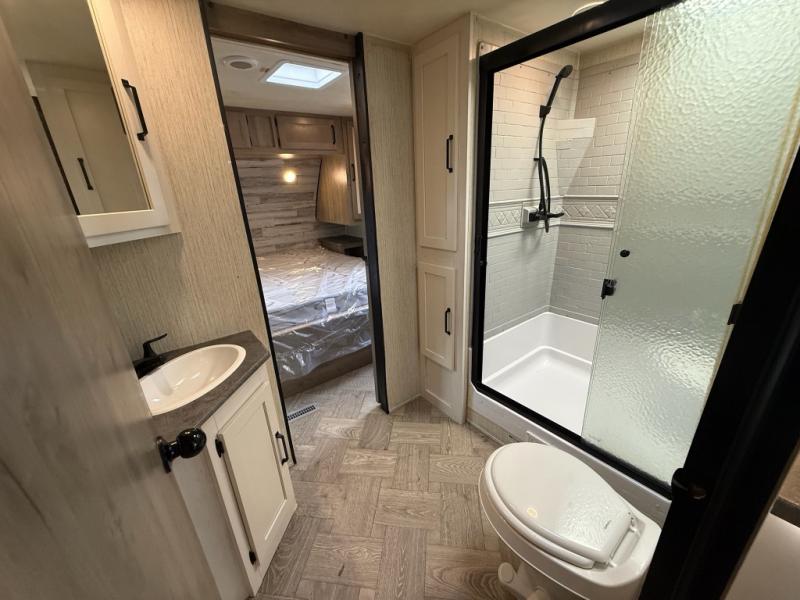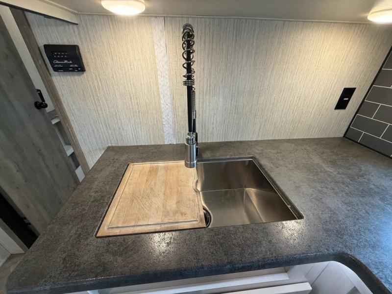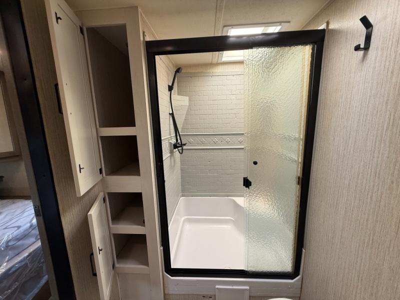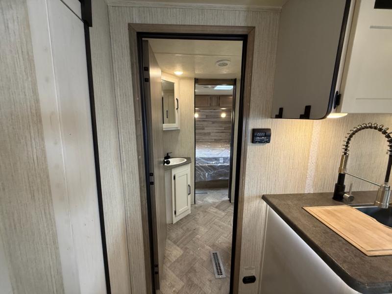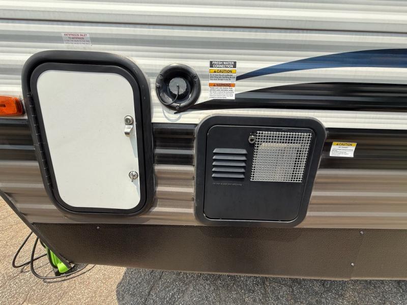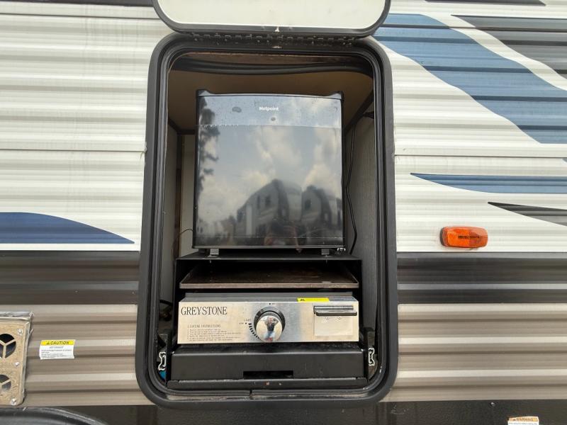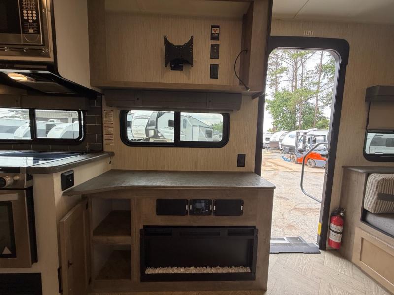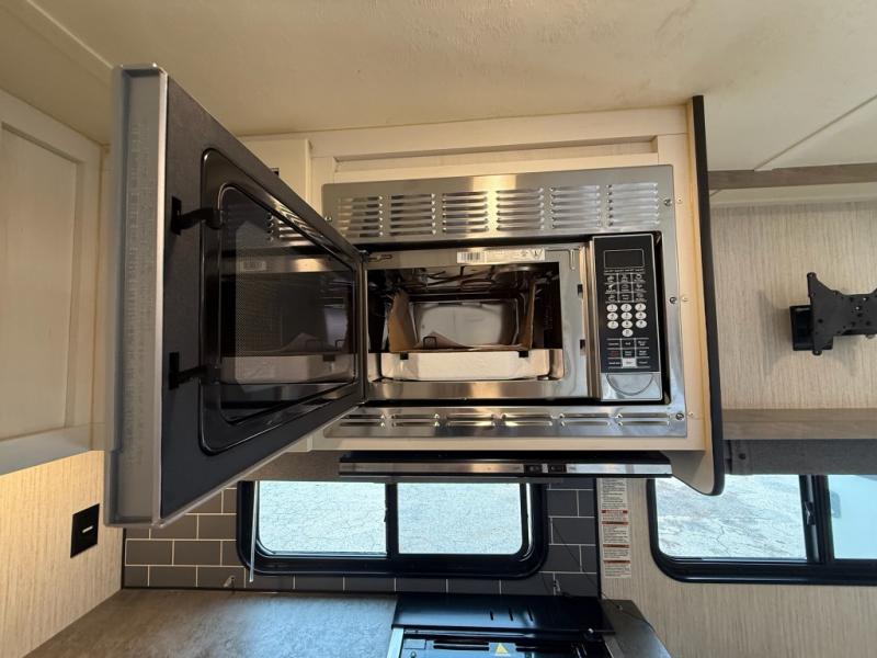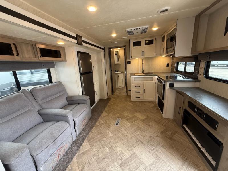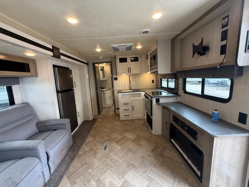 You won't believe all that this travel trailer has to offer! From the rear U-shaped dinette that is great for eating meals, playing games, and even transforming into extra sleeping spaces to the dual entry doors that will create a smooth flow of traffic in and out of the unit. The chef can prepare their best meals either indoors with the three burner cooktop or add the optional exterior micro kitchen with griddle to breathe some fresh air in while they cook. The walk-through bathroom is easy for everyone to access, especially those staying in the front bedroom, and has a 32" x 40" shower with a seat to freshen up in each morning!