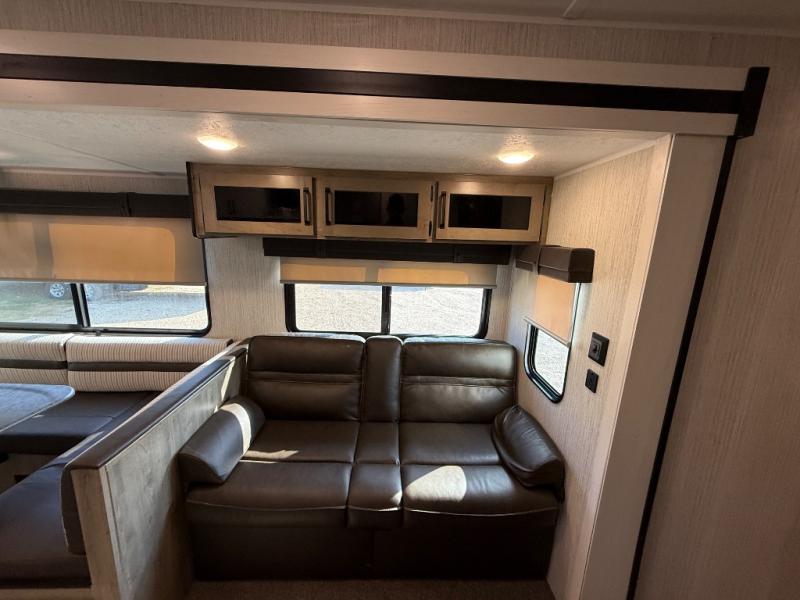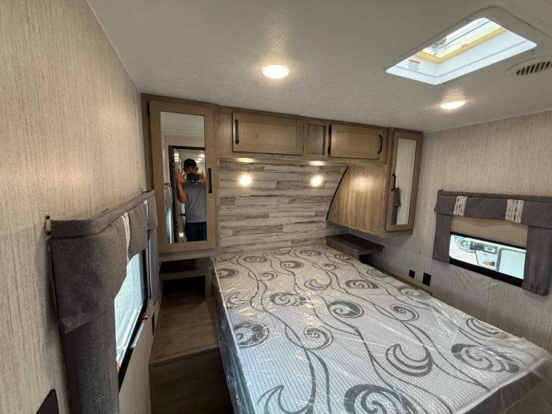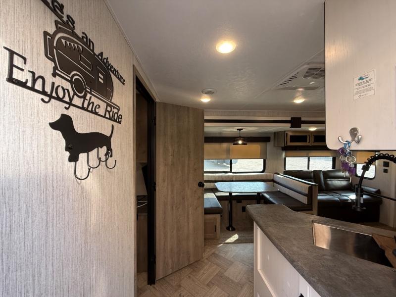 If you're looking for family-fun adventure then you need one of these Palomino Puma fifth wheels, travel trailers, or toy haulers! They are built rugged, easy to tow, and jam packed with features. The Darco wrapped underbelly will protect your units vitals through every season and the AlphaPly roofing membrane covers it. They also have super lube axles and a powder coated frame. Their luxurious interiors feature a spice rack and built-in knife rack in the kitchen, USB charging ports to keep your electronics at 100%, and high density foam mattresses for a good night's rest. The required Advantage package comes with night roller shades for privacy at night, two outside speakers to crank up the tunes while you play cornhole, and an outside shower to keep the dirt outside where it belongs, plus so much more!