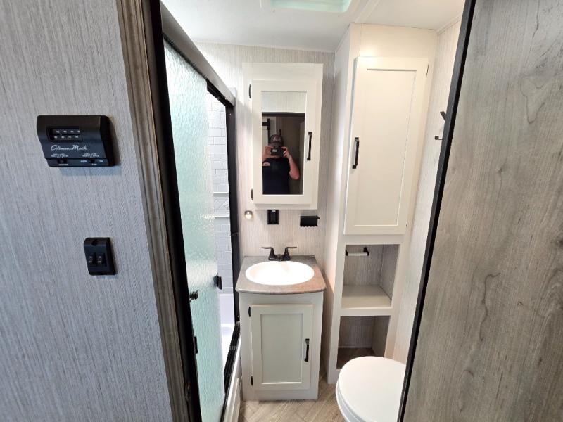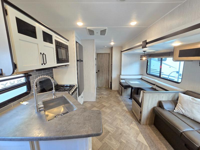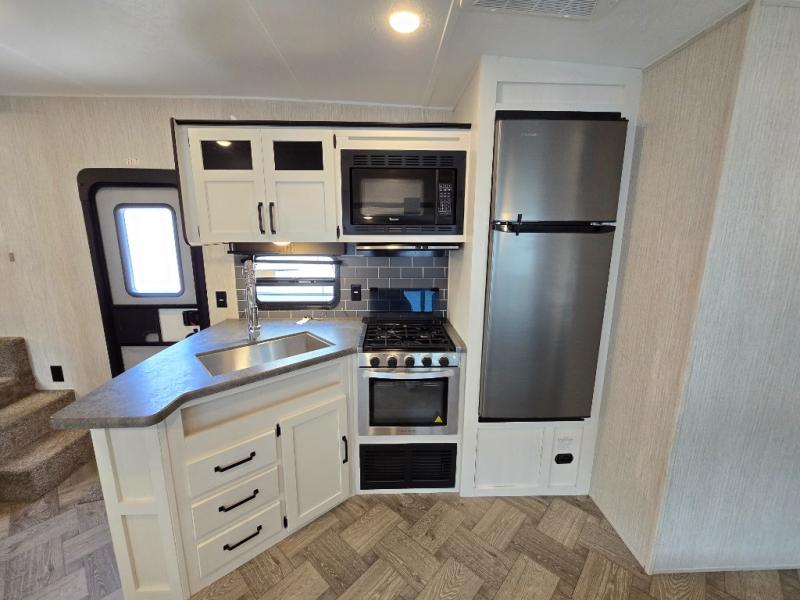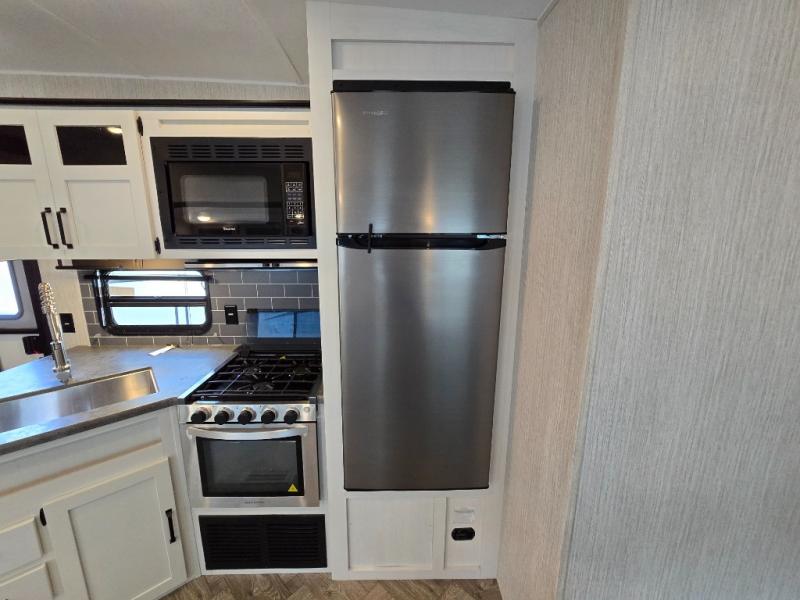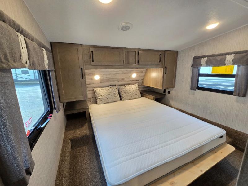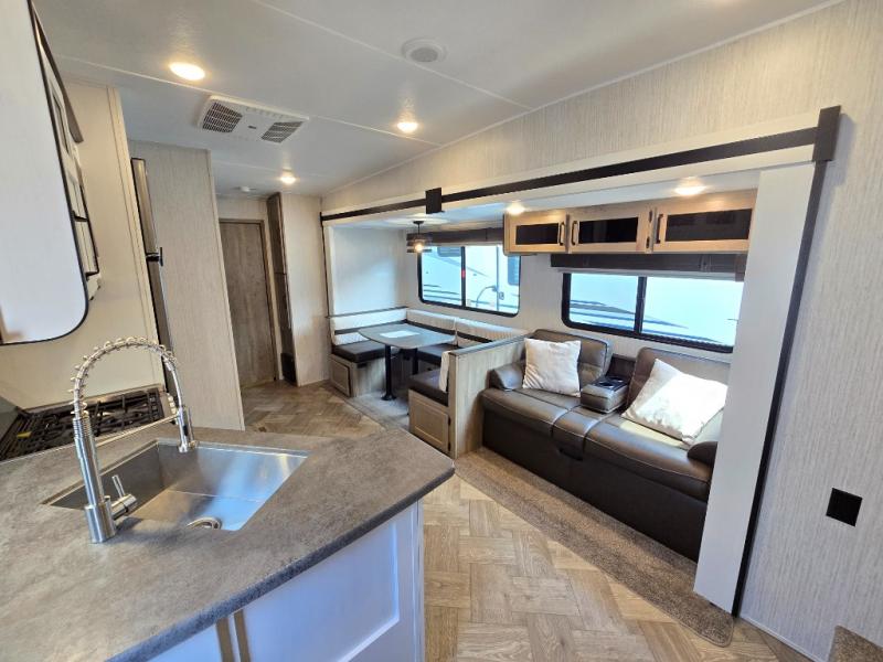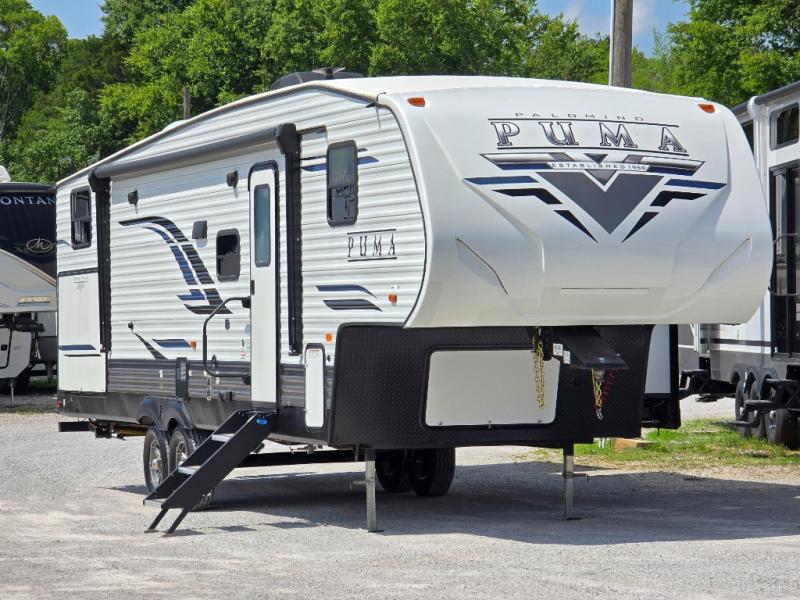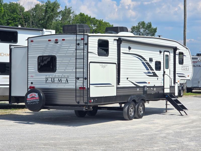 If you're looking for family-fun adventure then you need one of these Palomino Puma fifth wheels, travel trailers, or toy haulers! They are built rugged, easy to tow, and jam packed with features. The Darco wrapped underbelly will protect your units vitals through every season and the AlphaPly roofing membrane covers it. They also have super lube axles and a powder coated frame. Their luxurious interiors feature a spice rack and built-in knife rack in the kitchen, USB charging ports to keep your electronics at 100%, and high density foam mattresses for a good night's rest. The required Advantage package comes with night roller shades for privacy at night, two outside speakers to crank up the tunes while you play cornhole, and an outside shower to keep the dirt outside where it belongs, plus so much more!