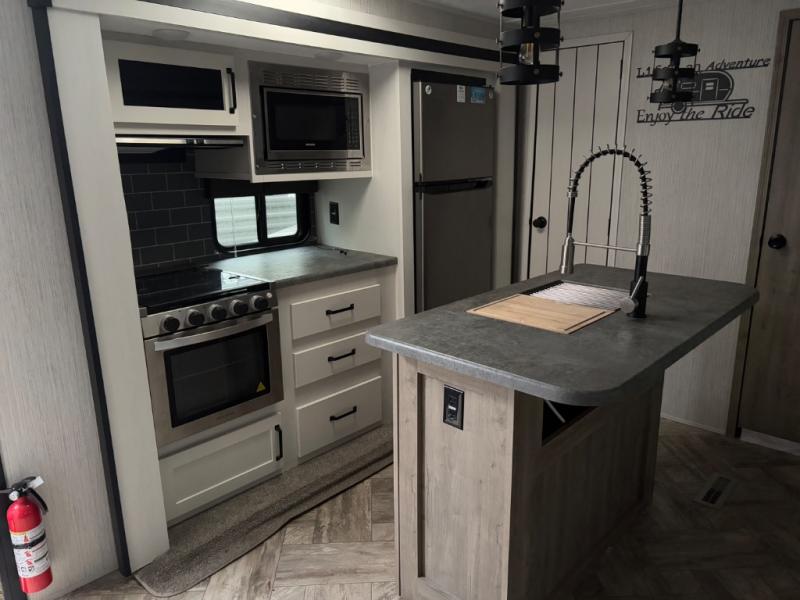If you're looking for family-fun adventure then you need one of these Palomino Puma fifth wheels, travel trailers, or toy haulers! They are built rugged, easy to tow, and jam packed with features. The Darco wrapped underbelly will protect your units vitals through every season and the AlphaPly roofing membrane covers it. They also have super lube axles and a powder coated frame. Their luxurious interiors feature a spice rack and built-in knife rack in the kitchen, USB charging ports to keep your electronics at 100%, and high density foam mattresses for a good night's rest. The required Advantage package comes with night roller shades for privacy at night, two outside speakers to crank up the tunes while you play cornhole, and an outside shower to keep the dirt outside where it belongs, plus so much more!