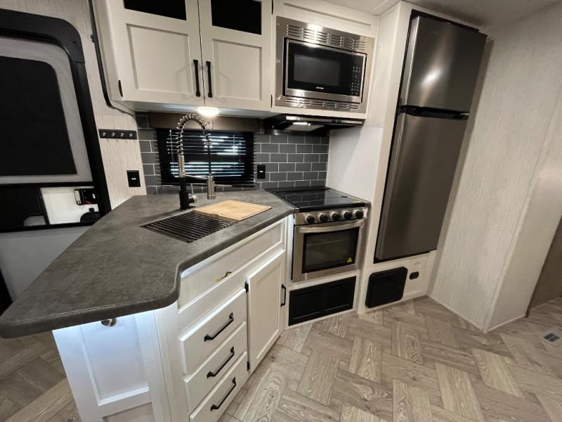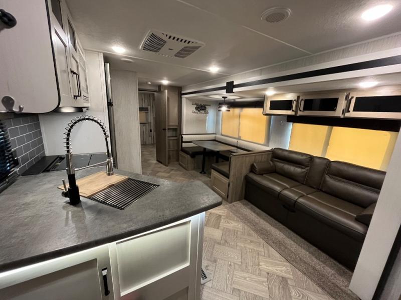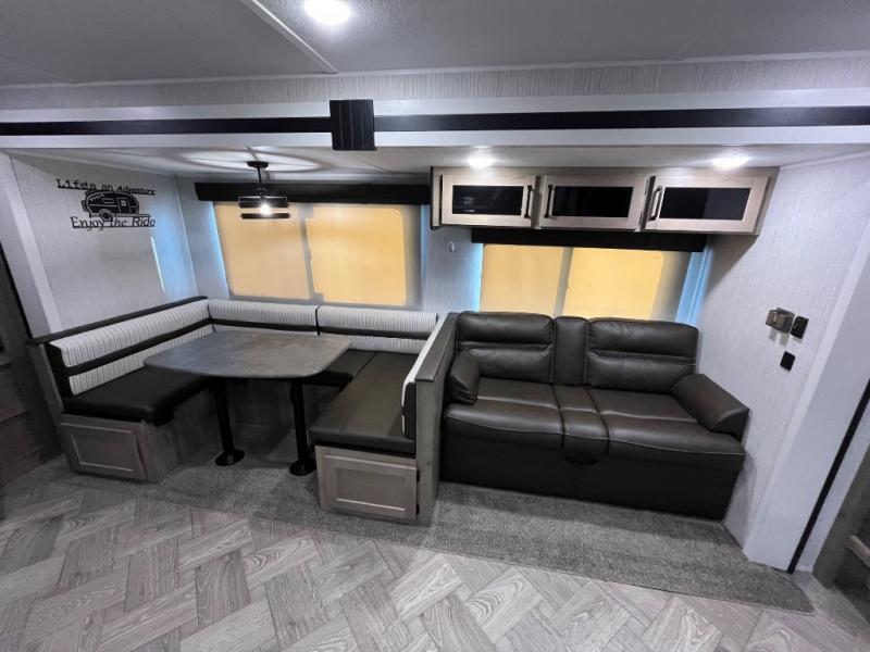 If you're looking for family-fun adventure then you need one of these Palomino Puma fifth wheels, travel trailers, or toy haulers! They are built rugged, easy to tow, and jam packed with features. The Darco wrapped underbelly will protect your units vitals through every season and the AlphaPly roofing membrane covers it. They also have super lube axles and a powder coated frame. Their luxurious interiors feature a spice rack and built-in knife rack in the kitchen, USB charging ports to keep your electronics at 100%, and high density foam mattresses for a good night's rest. The required Advantage package comes with night roller shades for privacy at night, two outside speakers to crank up the tunes while you play cornhole, and an outside shower to keep the dirt outside where it belongs, plus so much more!